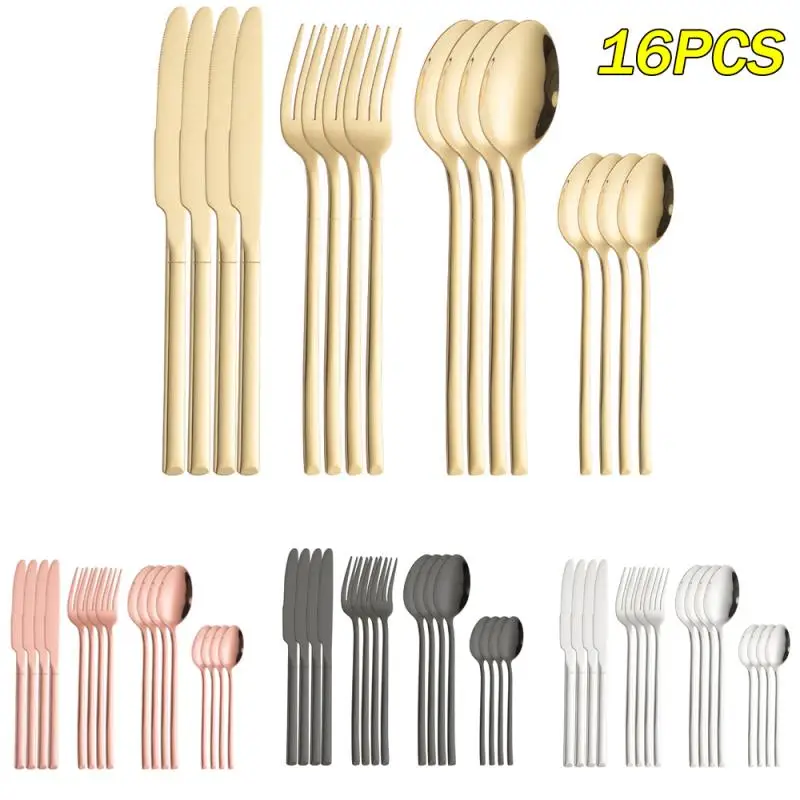 16pcs Gold Cutlery Dinner Set 4 Colors Stainless Steel Tableware Kitchen Set Dinnerware Spoon Fork Knife Dinner Set Tableware
