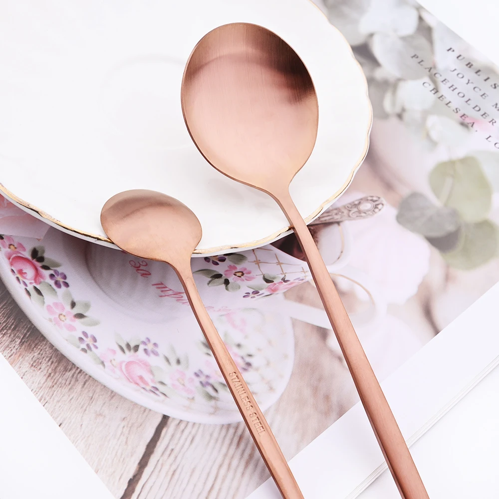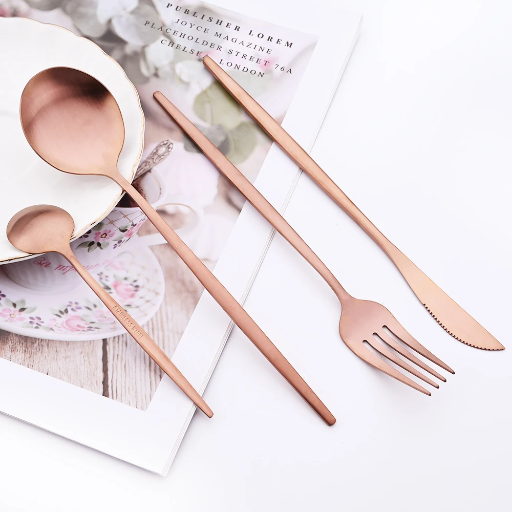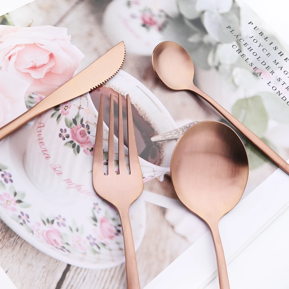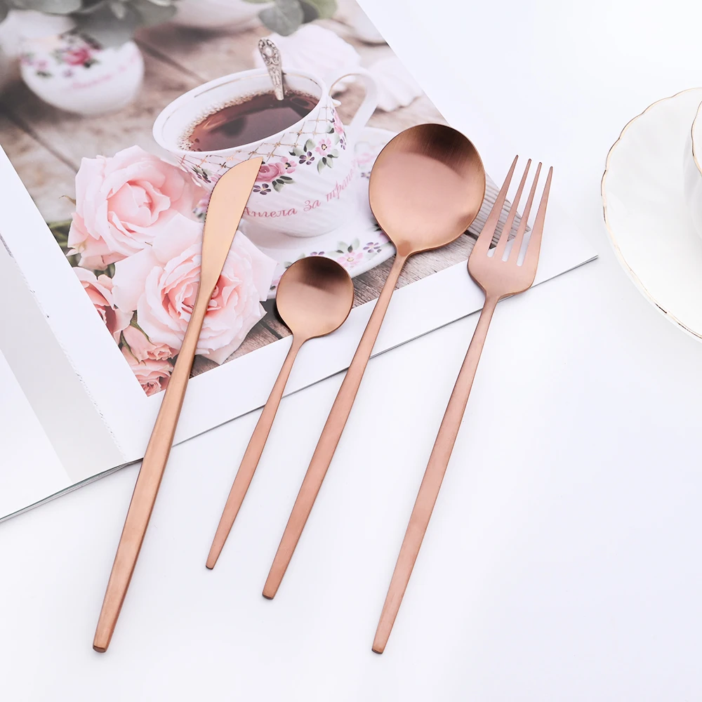 16Pcs Rose Gold Cutlery Set Knife Fork Coffee Spoons Dinnerware Set Stainless Steel Tableware Set Western Kitchen Silverware Set