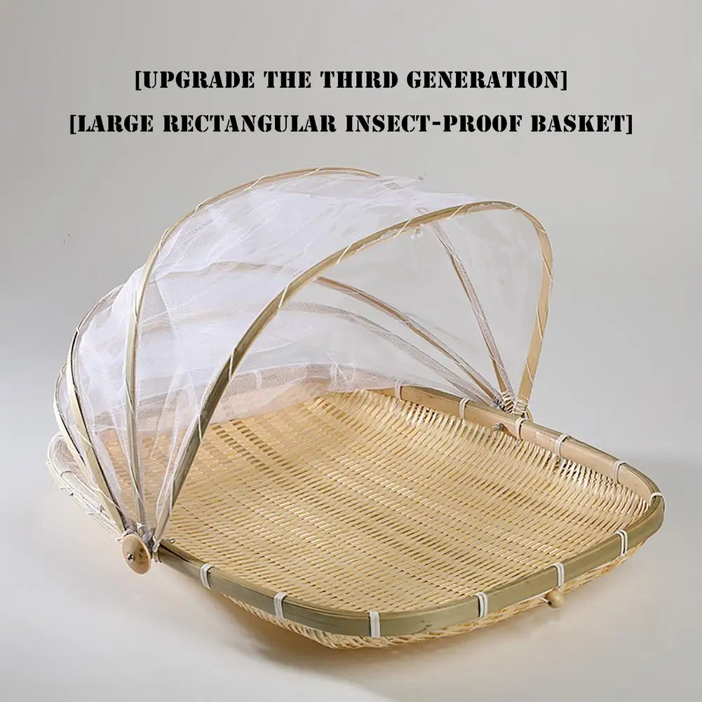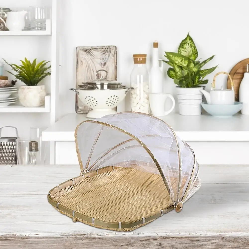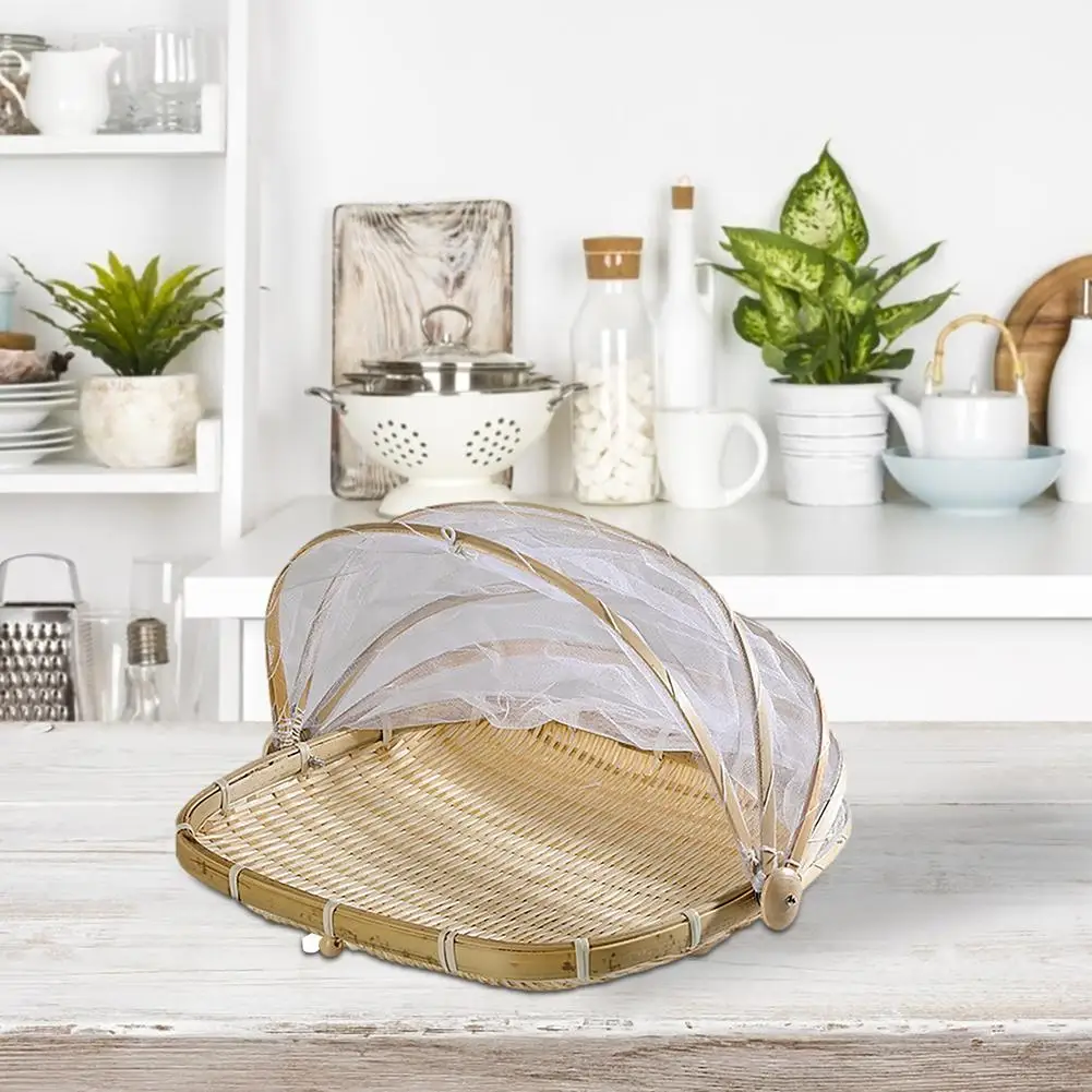 1Pc Hand Woven Bug Proof Basket Dustproof Kithen Picnic Basket Handmade Fruit Vegetable Bread Cover Wicker Basket With Gauze