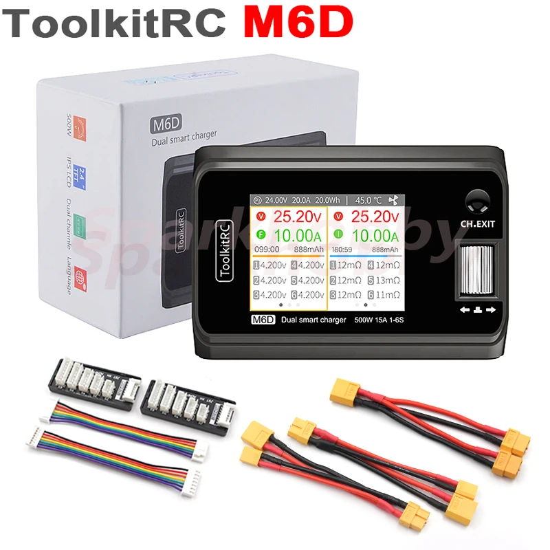 1PC New ToolkitRC M6D MINI Smart Charger DC Dual-Channel 250Wx2 15A Output 2-6s High power balance charger for RC battery ACCS