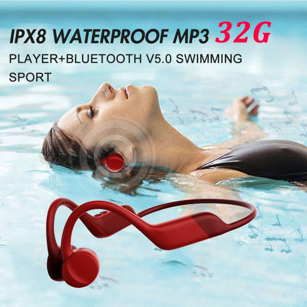 2022 New Waterproof MP3 IPX8 Diving Swimming MP3 Player 32GB Bone Conduction Wireless Bluetooth Headset Surfing