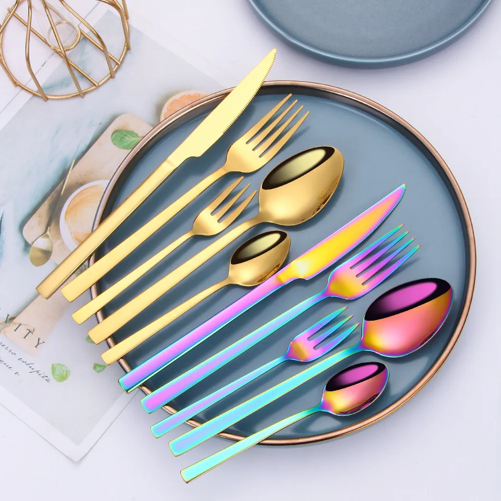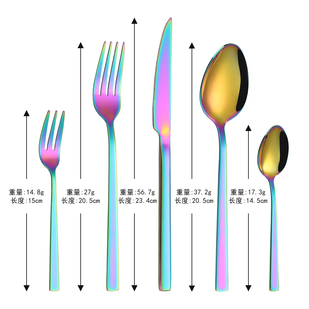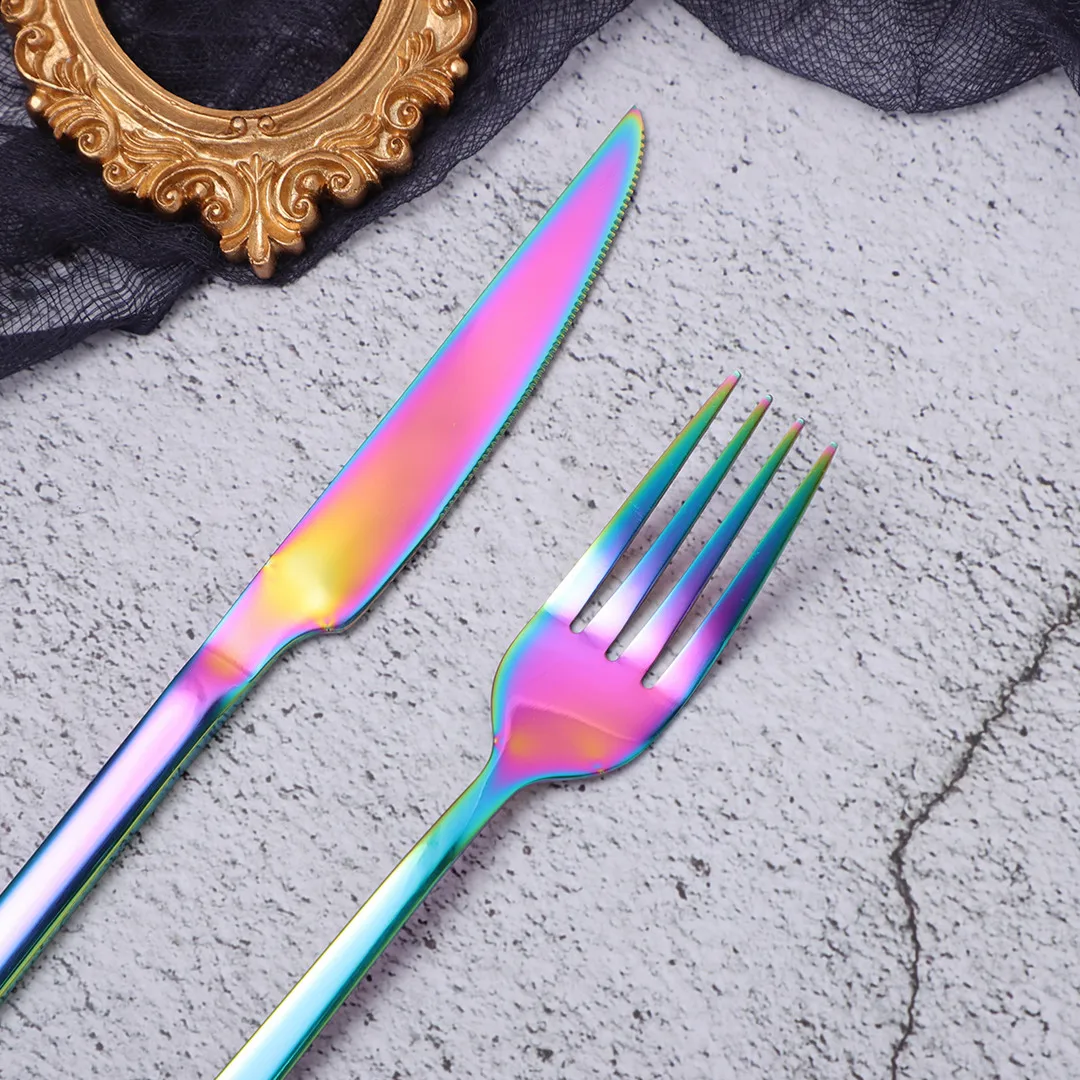 20Pcs Rainbow Cutlery Set Stainless Steel Dinnerware Set Silverware Kitchen Tableware Set Knife Fork Spoon Flatware Dropshipping