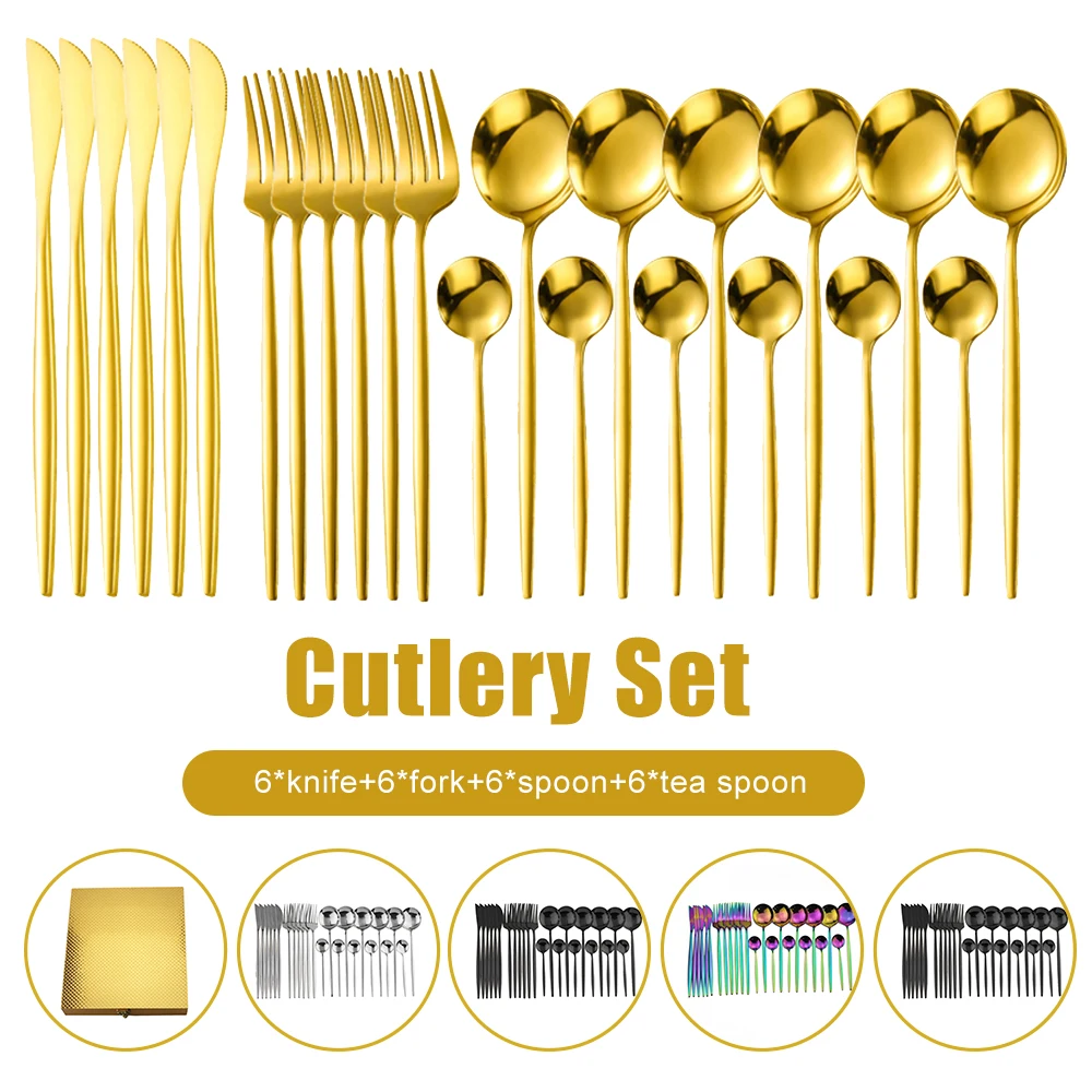24pcs Gold Dinnerware Set : Stainless Steel Tableware Set