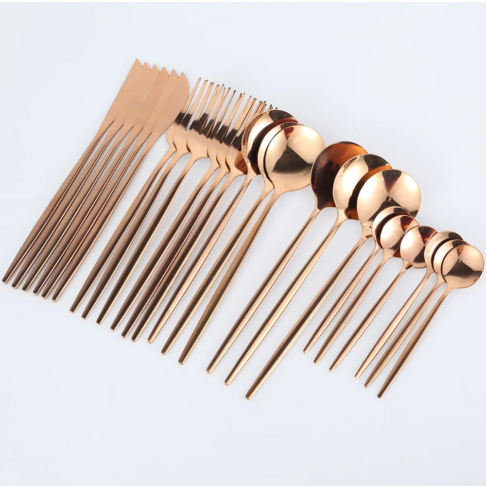 24pcs Full Tableware Multicolor Stainless Steel Cutlery Set Fruit Cake Fork Dessert Spoon Knife Set Household Hotel Kitchen Tool