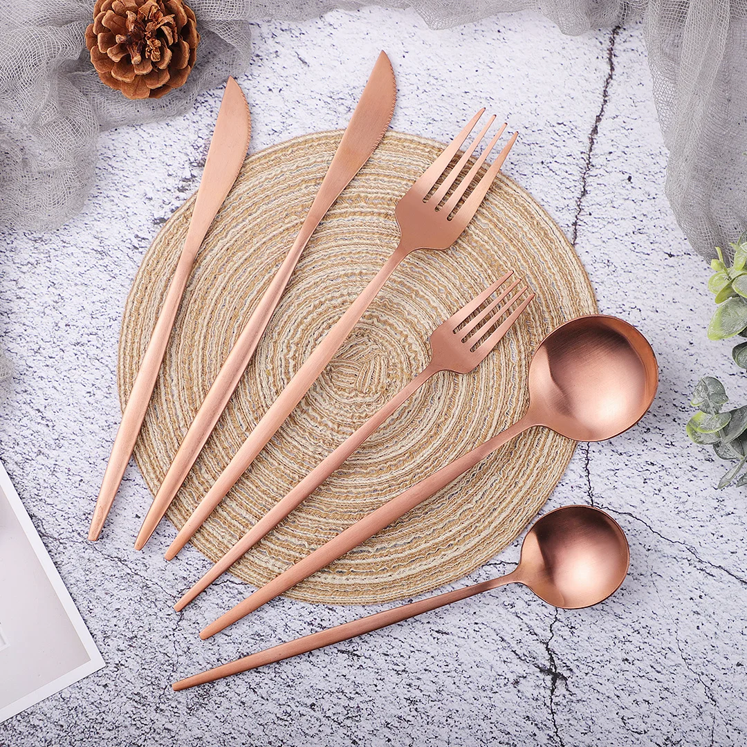 24Pcs Rose Gold Cutlery Set Knife Fork Coffee Spoons Dinnerware Set Stainless Steel Tableware Set Western Kitchen Silverware Set
