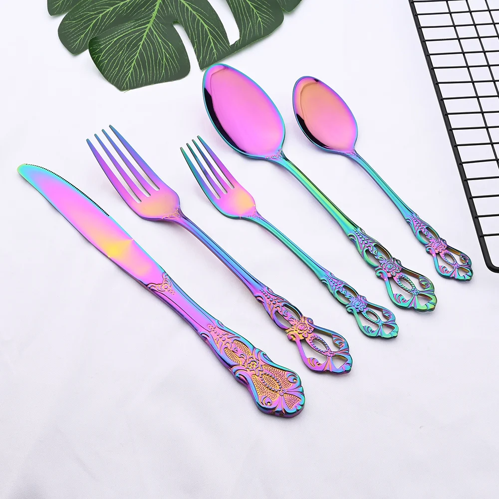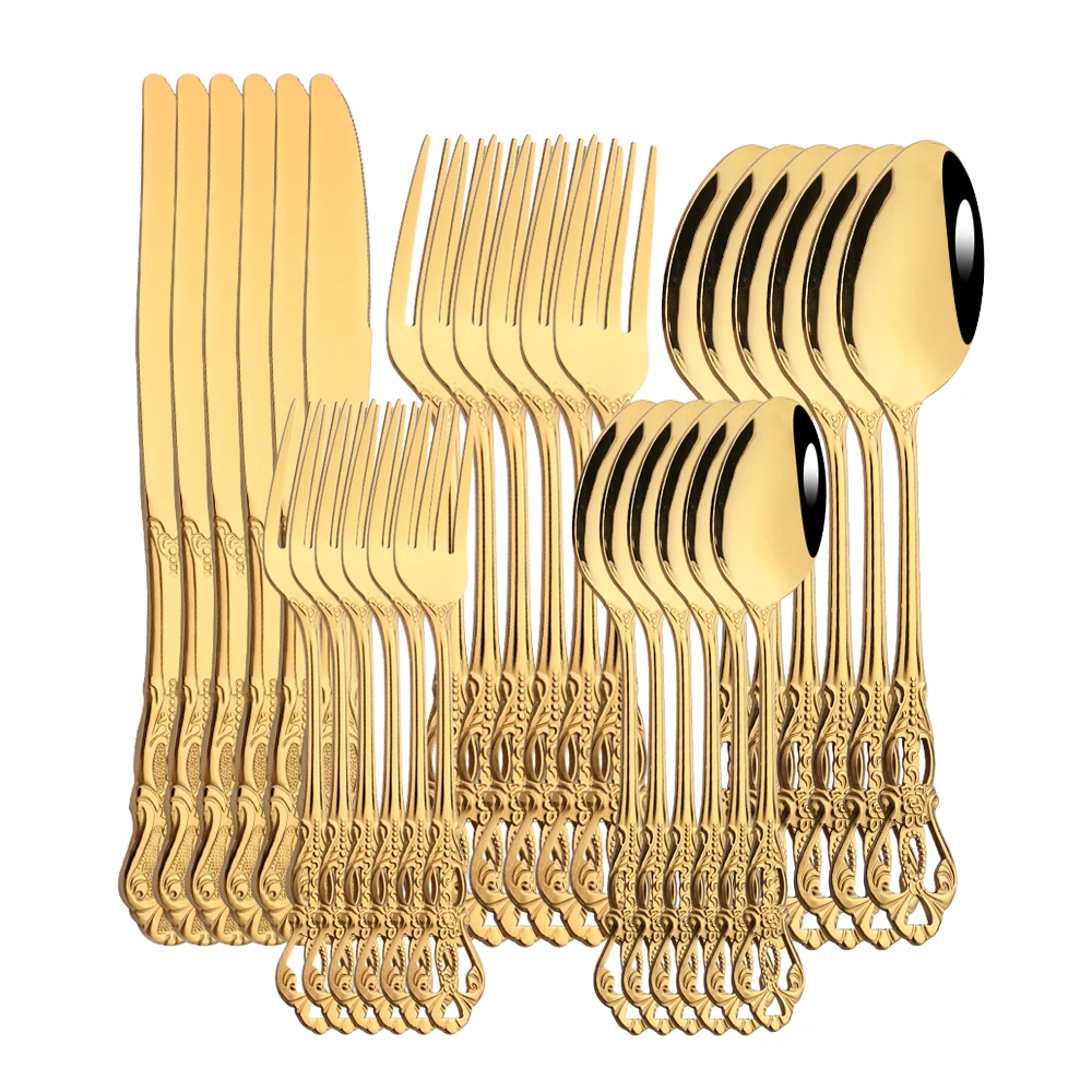 30Pcs/6Set Gold Royal Cutlery Set Dinner Knife Fork Spoon Dinnerware Flatware Stainless Steel For Home Kitchen Tableware Set