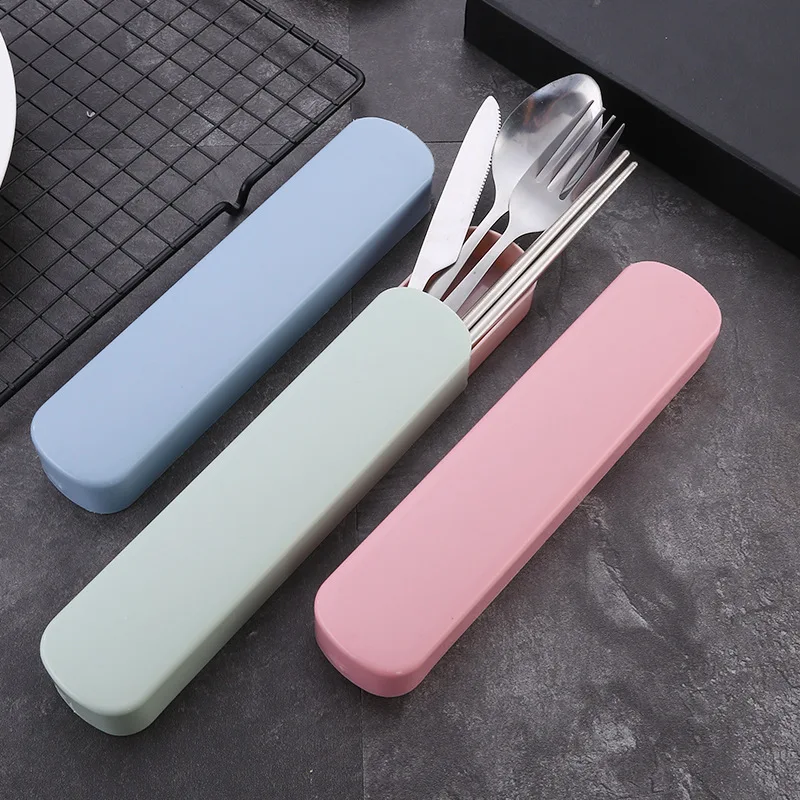 3PCS Cutlery Set Place Setting Dinnerware Tableware Utensils Stainless Steel Spoon Fork Chopsticks Straw with Case Kitchen Items