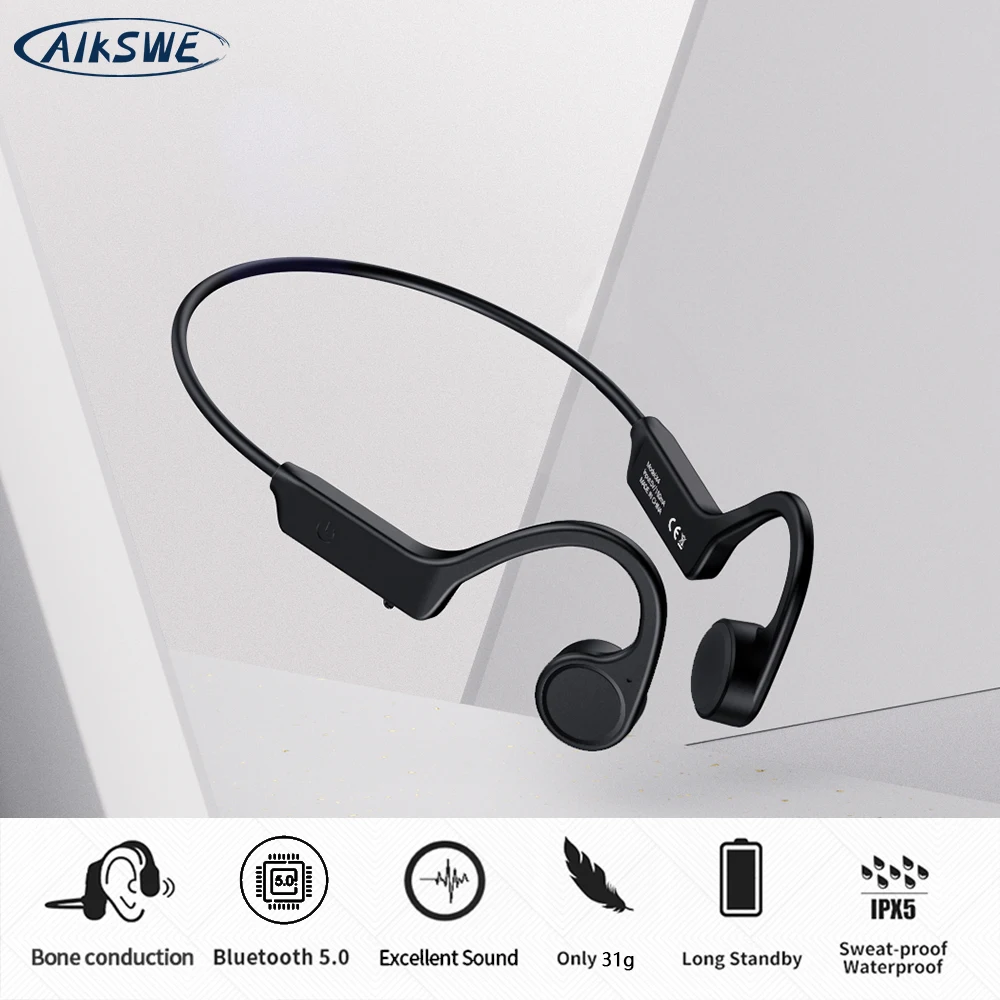 AIKSWE Bone Conduction Headphones Bluetooth Wireless Sports Earphones Waterproof Stereo Hands-Free With Mic For Running Cycling