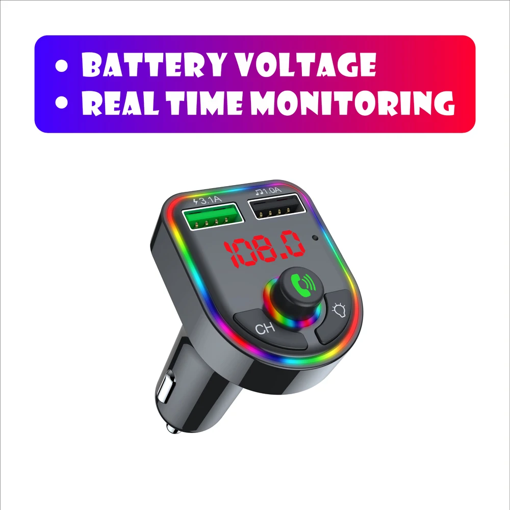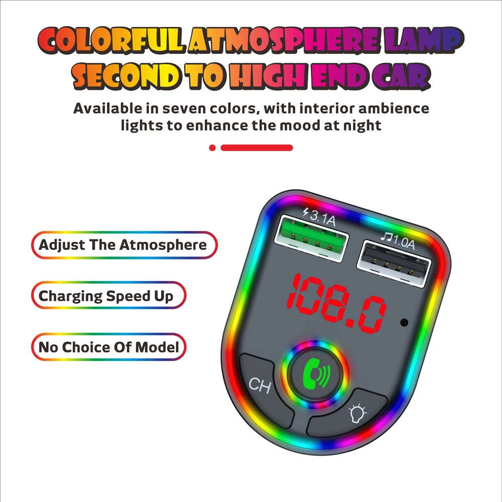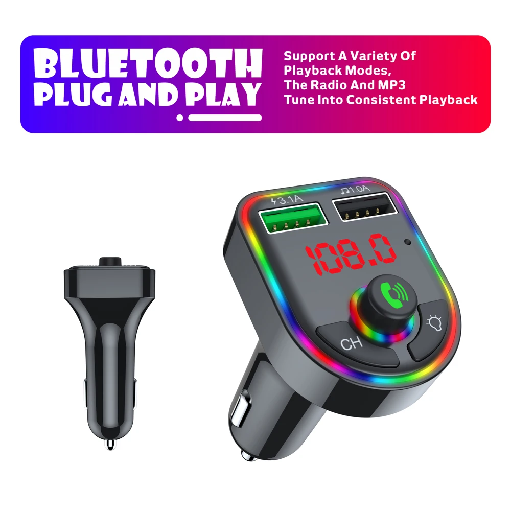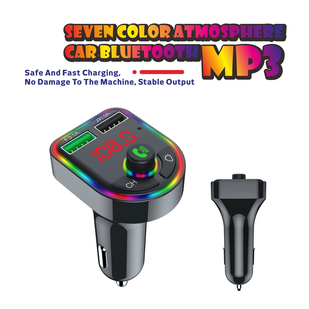 Ambient Light Bluetooth-compatible 5.0 FM Transmitter Car MP3 Player Wireless Handsfree Audio Receiver USB Fast Charge TF U Disk