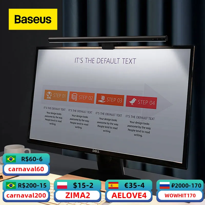 Baseus Stepless Dimming Eye-Care LED Desk Lamp For Computer PC Monitor Screen Hanging Light Bar LED Reading USB Powered Lamp