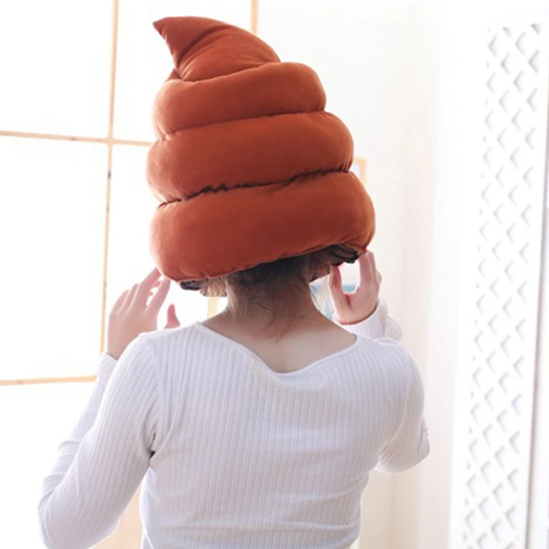 Creative Cute Shit Shape Plush Hat Stuffed Toy Funny Fake Poop Full Headgear Cap Gag Gift Cosplay Costume Party Photo Props Acce