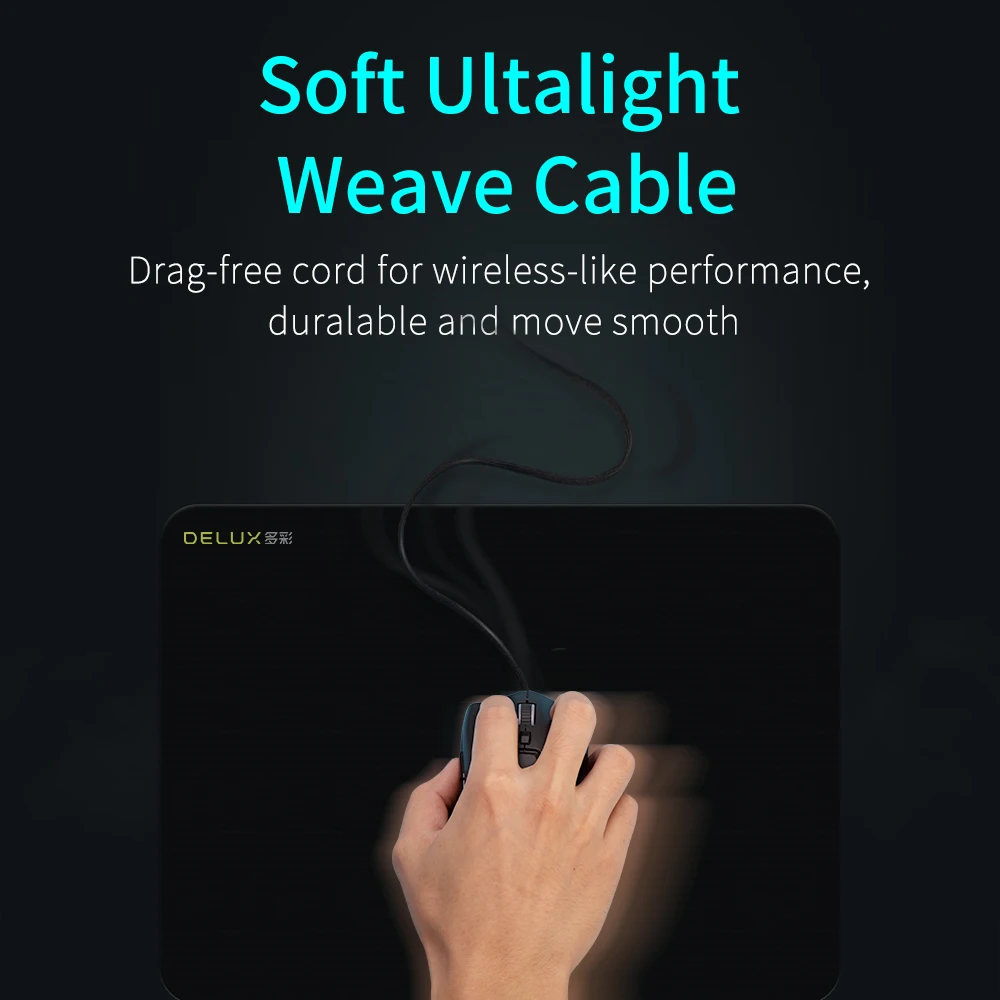 Delux M800 RGB 2.4Ghz Wireless + Wired Gaming Mouse Dual Mode 16000 DPI Lightweight Ergonomic 1000Hz Mice with Soft rope Cable