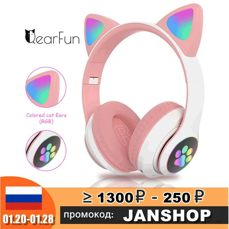 Flash Light Cute Cat Ears Wireless Headphones with Mic Can control LED Kid Girls Stereo Phone Music Bluetooth Headset Gamer Gift