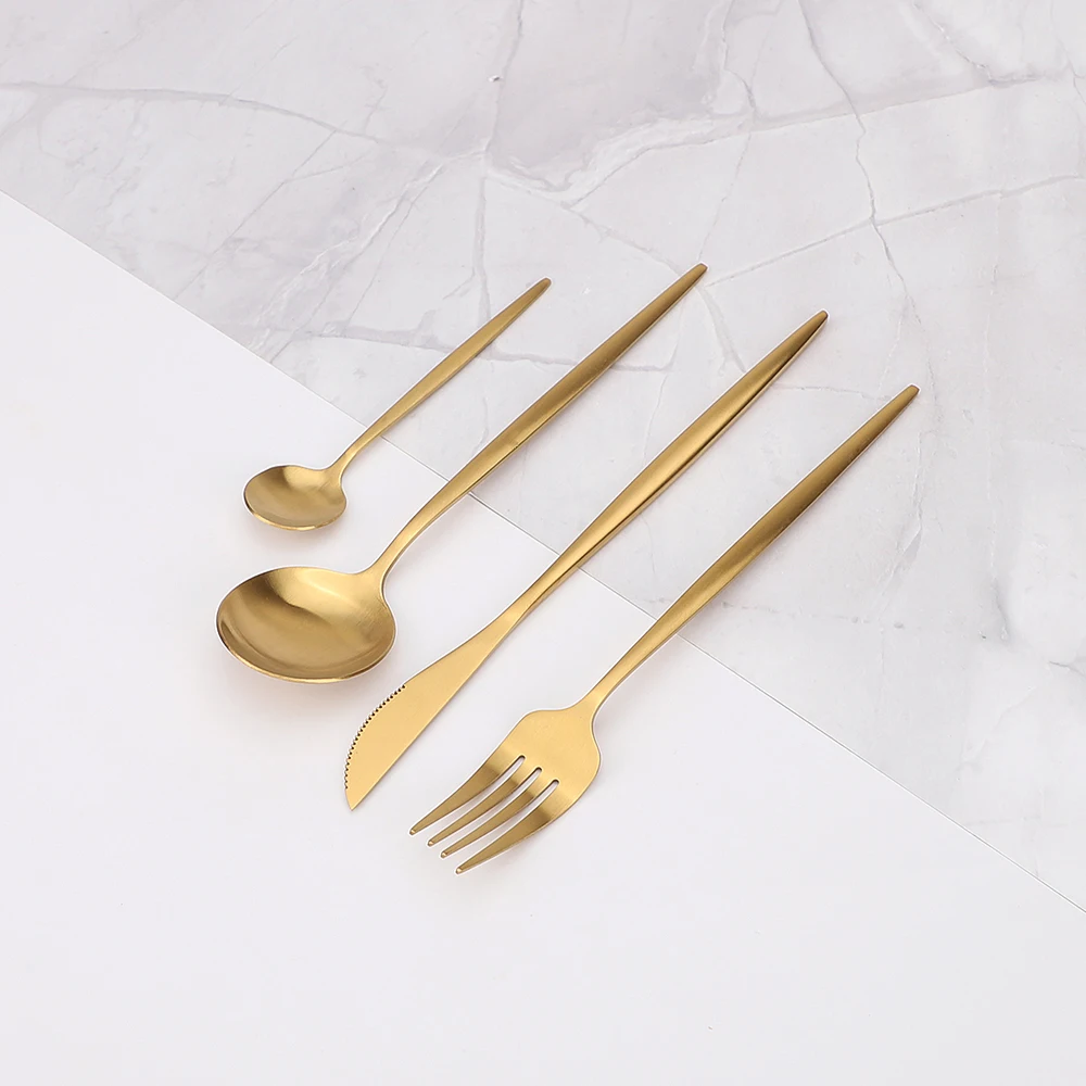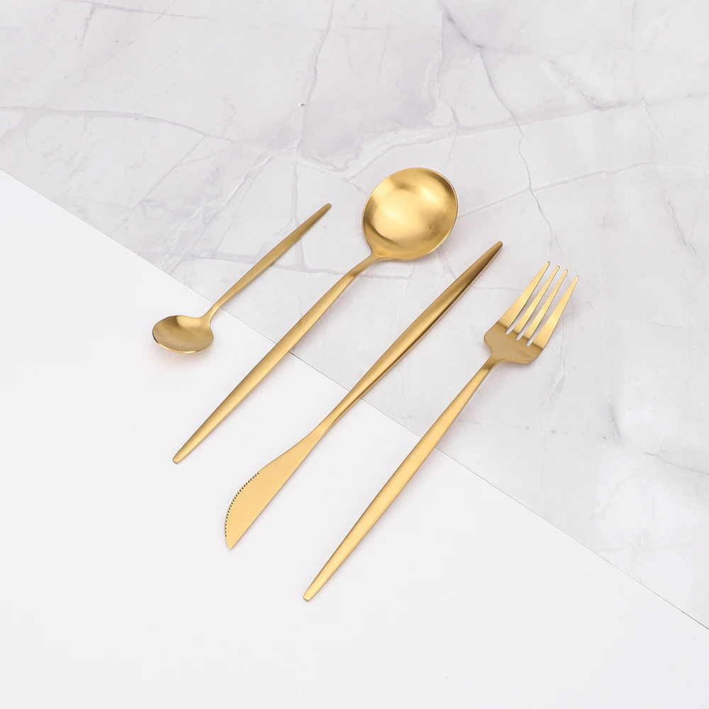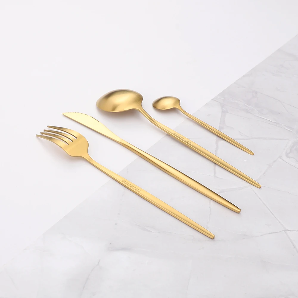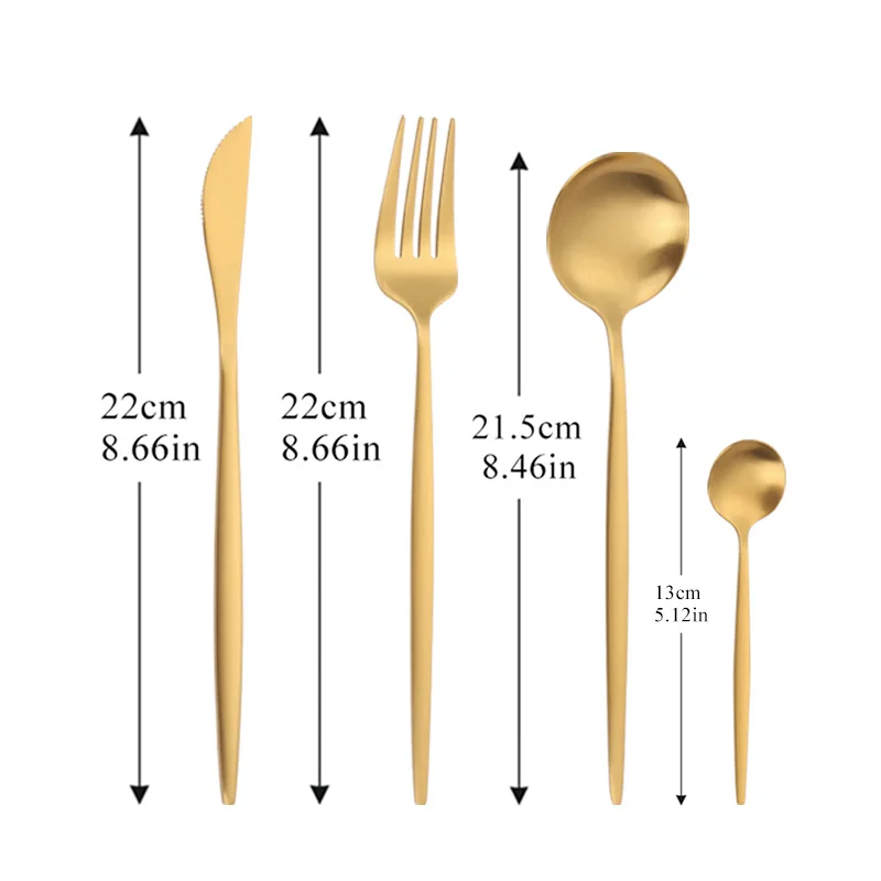 Lingeafey Matte Golden Cutlery Set 24Pcs Forks Knives Spoons Stainless Steel Cutlery Set Home Kitchen Tableware Set Dinnerware