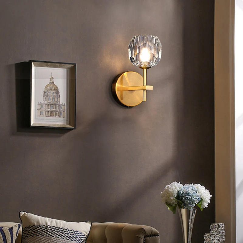 Modern Led Wall Lamp Crystal Ball Gold Sconce Lighting Indoor Living Bedroom Kitchen Fixture Bedside Decor Luminaire Nordic