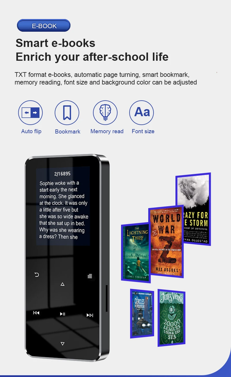 MP3 Player With Bluetooth-compatible Speaker Touch Screen Built-in 8GB 16GB HiFi Mini Portable Walk Man With Radio FM Recording