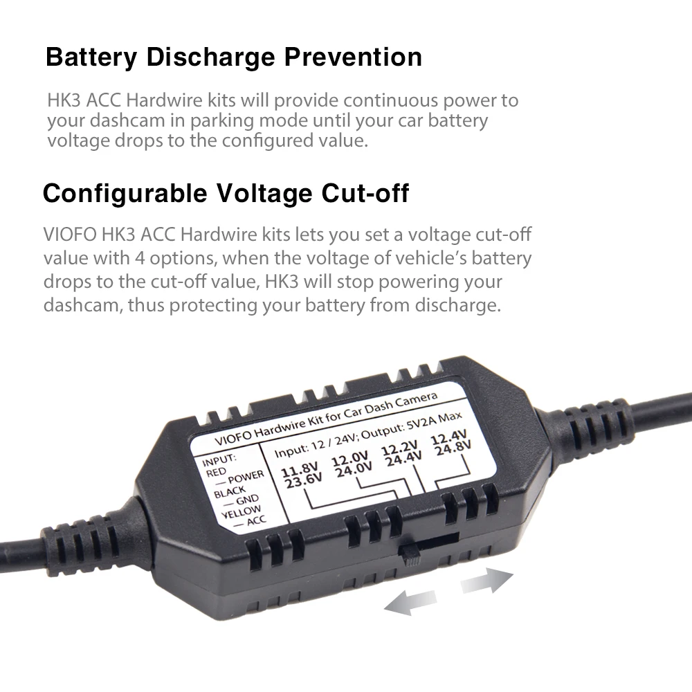 Original Viofo A129 A119 V3 Car Camera 3 Wire ACC Hardwire Kit Cable HK3 For Parking Mode optional Mini/Micro2/ATC/ATS Fuse Tap
