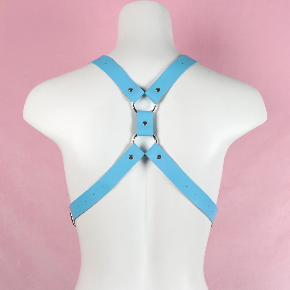 Pastel Goth Leather Harness Women Blue Gothic Garter Harajuku Body Bondage Belt Suspenders Punk Rave Clothes Sexy Lingerie Acces