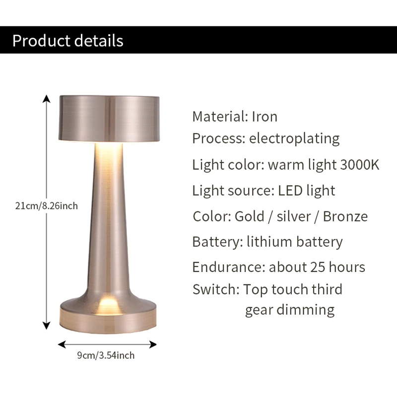Retro Bar Coffee Table Lamp LED Desktop Night Light Rechargeable Touch Sensor Wireless Restaurant Bedroom Decor Lighting Fixture
