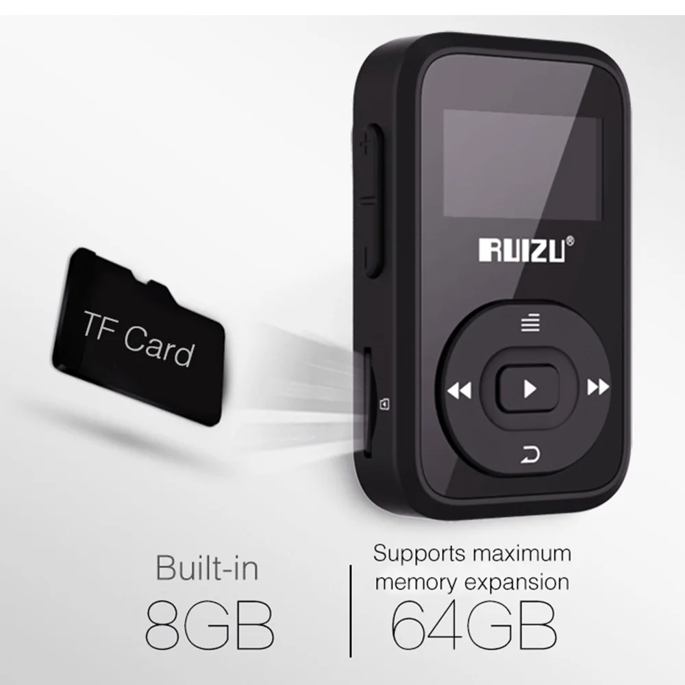 RUIZU X26 Sport MP3 Music Player Bluetooth-compatible Recorder FM Radio Support SD Card Clip MP3 Players 8GB Support TF Card