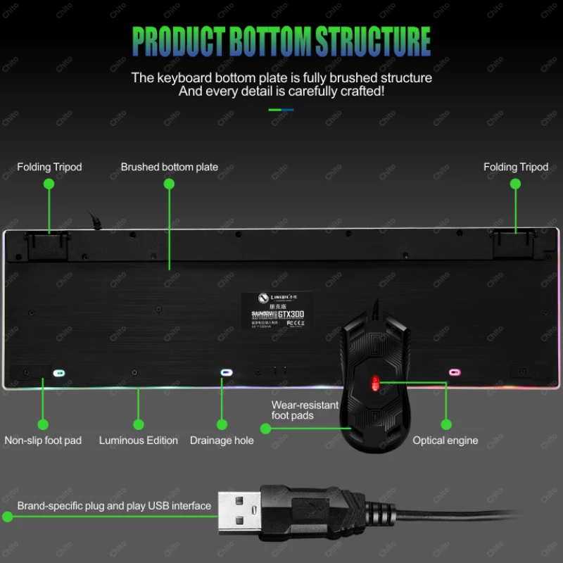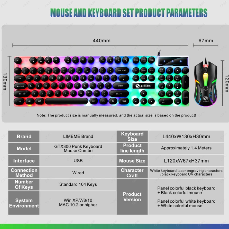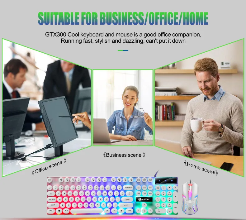 USB Wired Gaming Keyboard Mouse Set LED Luminous Rainbow Gamer Kit Waterproof Keyboard Home Office