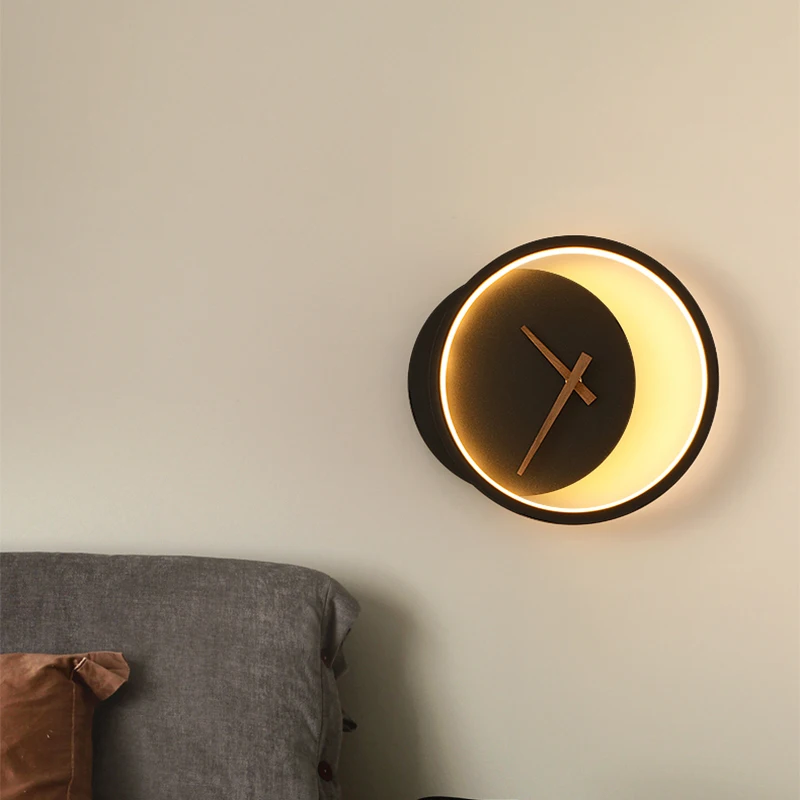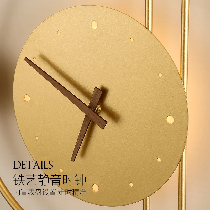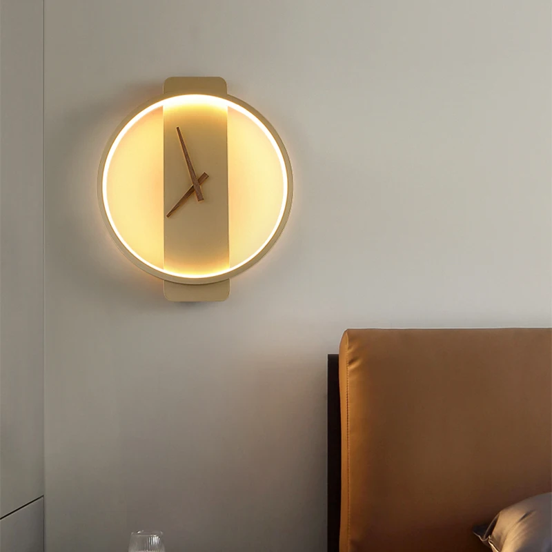 Wall lamp with clock light luxury living room background wall TV wall aisle wall lamp Nordic silent clock bedroom bedside lamp