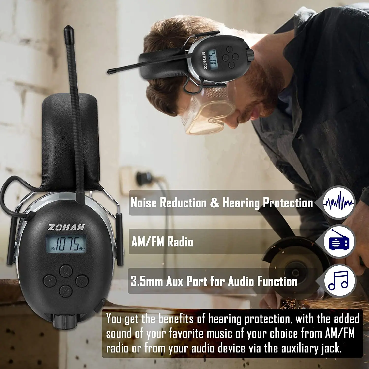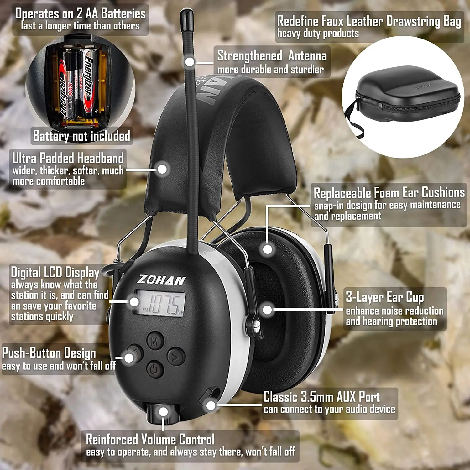 ZOHAN Radio Hearing Protection FM/AM Earmuffs Noise cancellation Headphones Protect Hear Ear protector with Case for Shooting