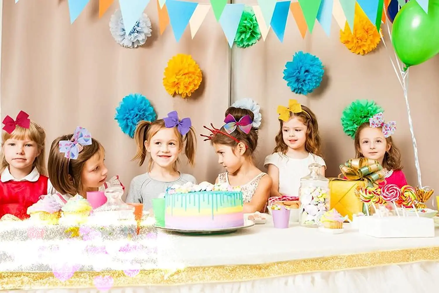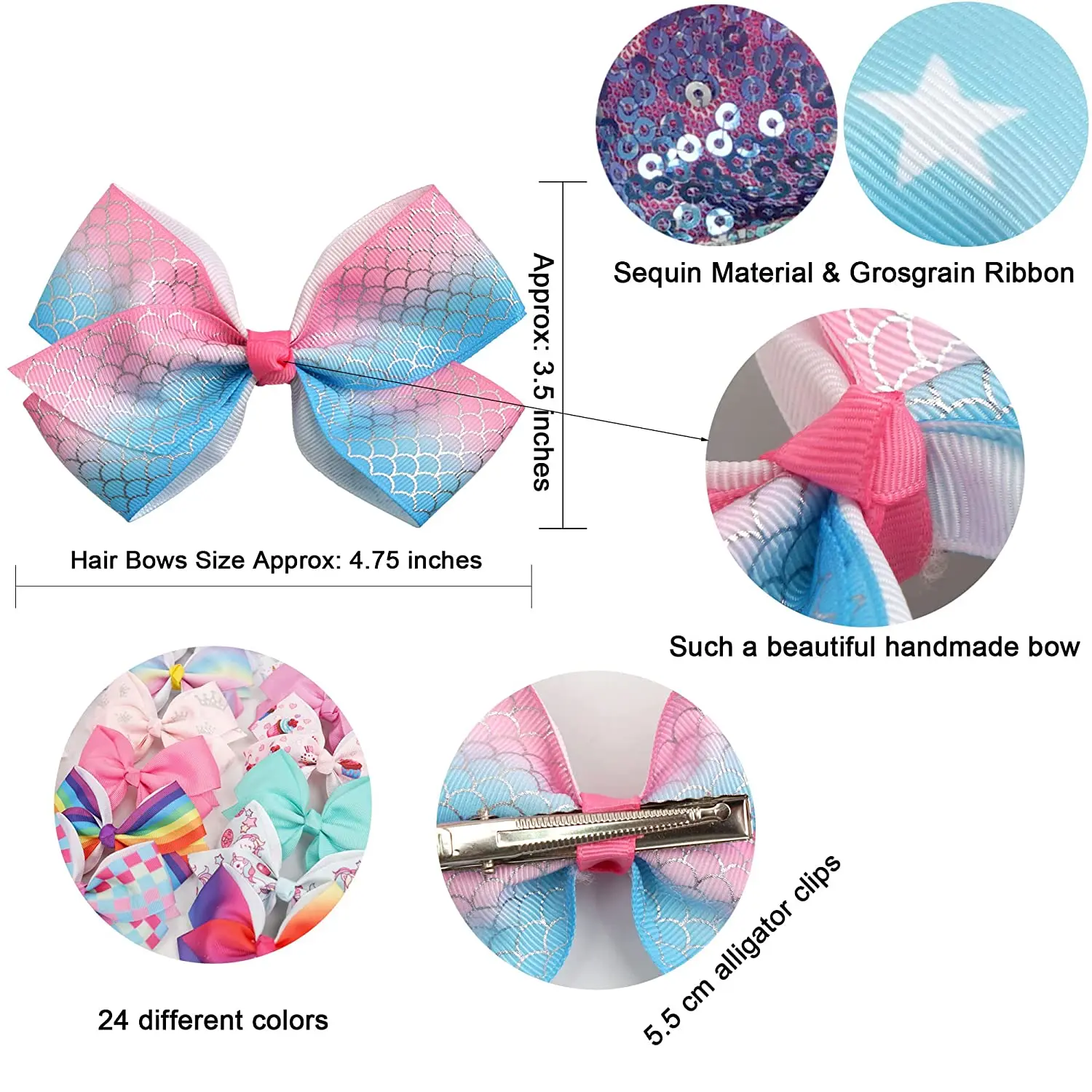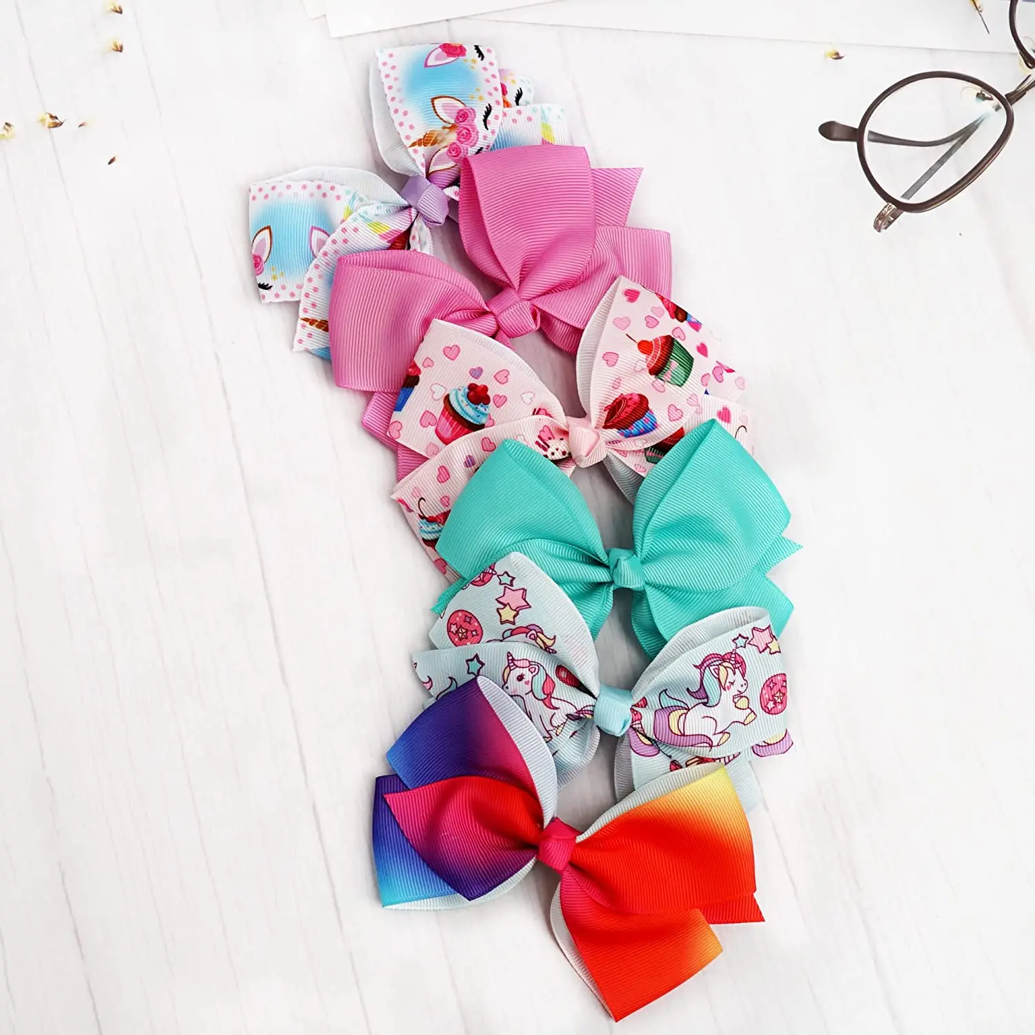 24 Pcs 5 Inches Hair Bows for Girls,Boutique Grosgrain Ribbon Rainbow and Unicorn Bow with Clips Hair Barrettes Accessories for