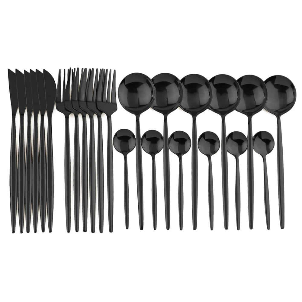 24Pcs White Gold Dinnerware Set Stainless Steel Knife Fork Spoon Cutlery Set Kitchen Tableware Set Flatware Set Hot Sale