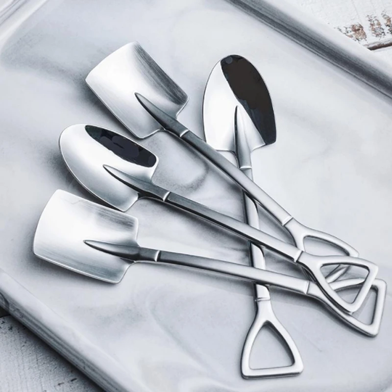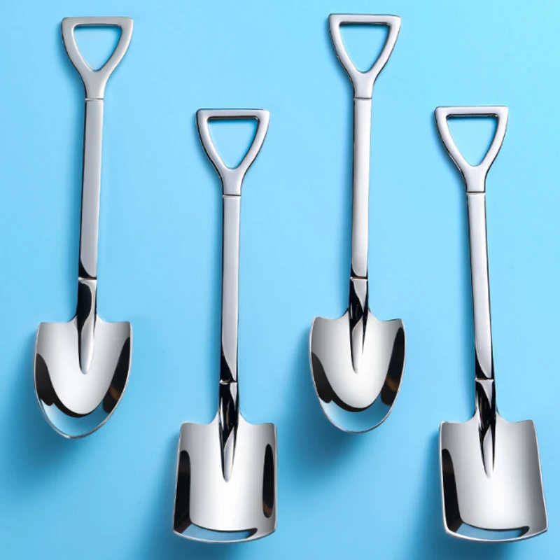 304 Stainless Steel Iron Shovel Spoon Coffee Ice Cream Spoon Engineering Shovel Retro Cute Square Head Spoon Kitchen Gadget