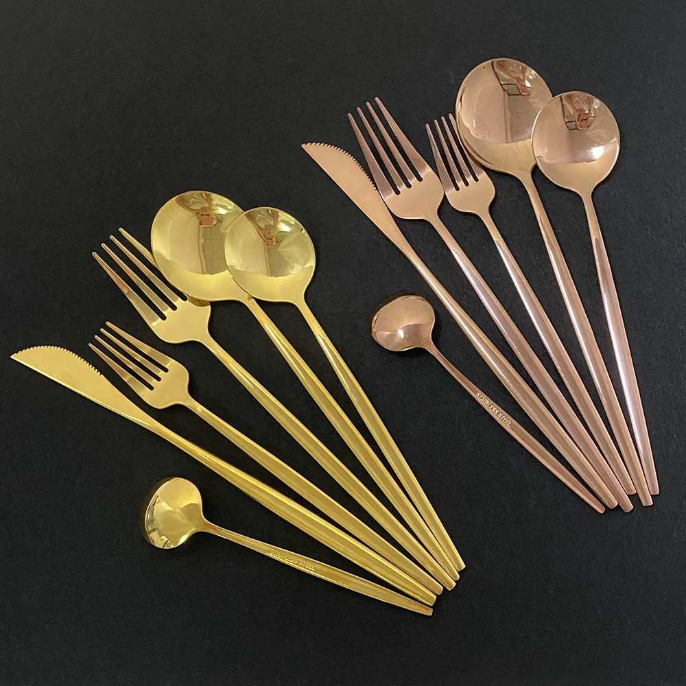36Pcs White Gold Dinnerware Cutlery Set Stainless Steel Knife Dessert Fork Tea Spoon Silverware Kitchen Flatware Tableware Set