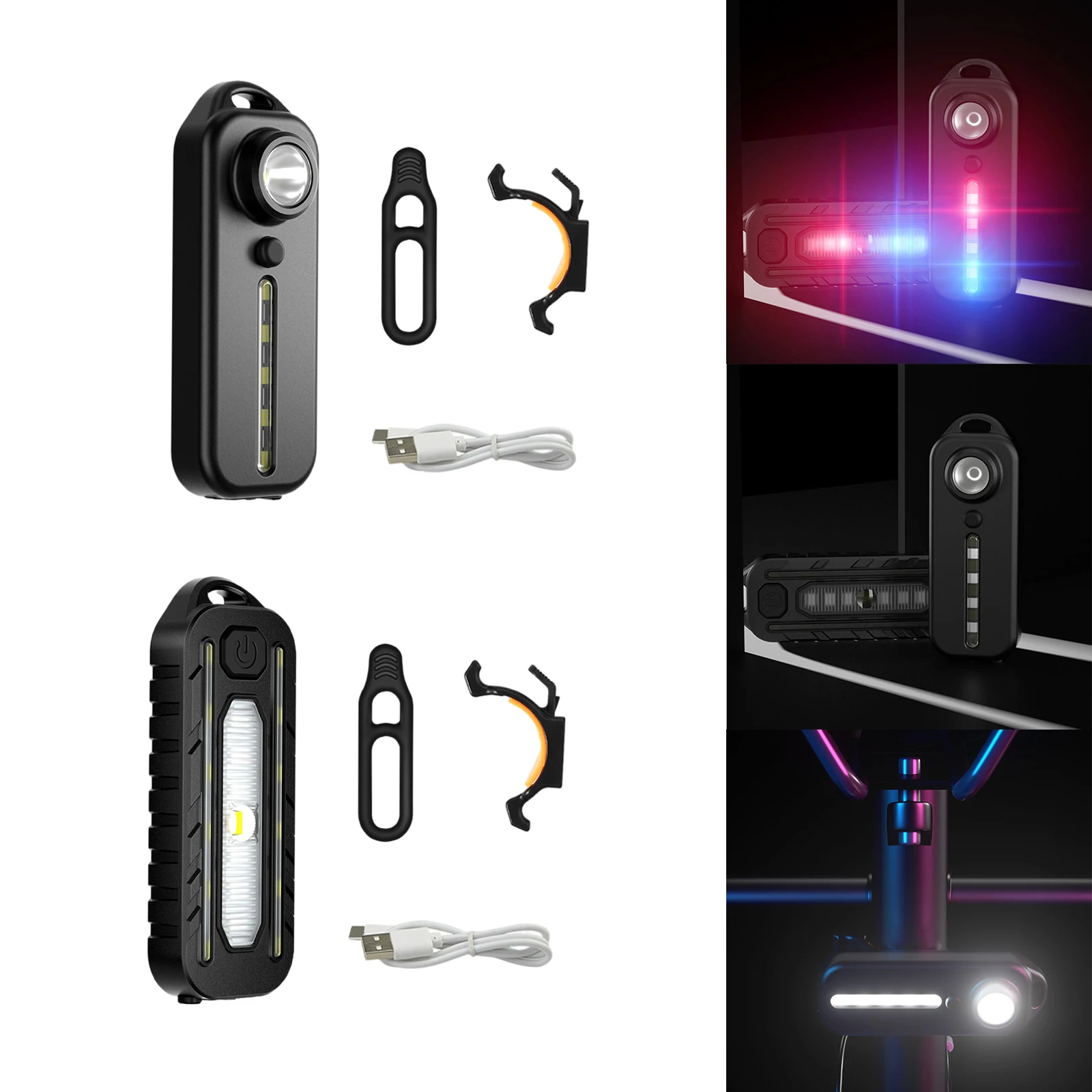Bicycle Helmet Lamp Portable Accs 5 Modes Red and Blue Multifunction Tail Light Bike Warning Light for Riding Hiking Outdoor