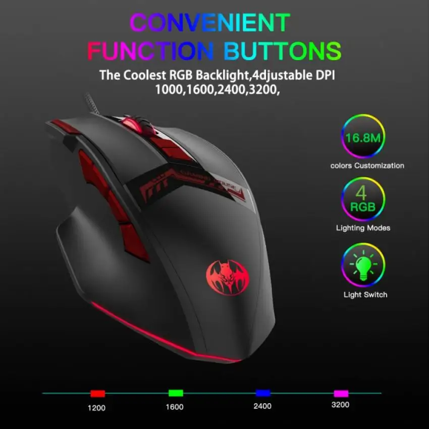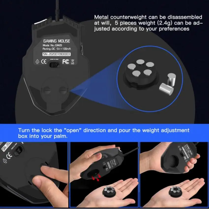 GM28B Wired Gaming Mouse Free Weight Mouse Ergonomic 10 Buttons RGB Wired Mice Optical Gaming Mause for PC Laptop