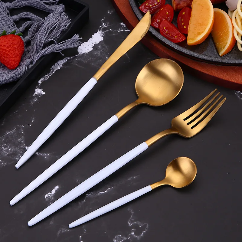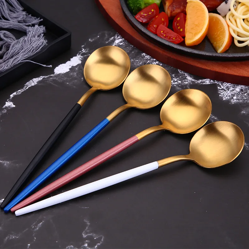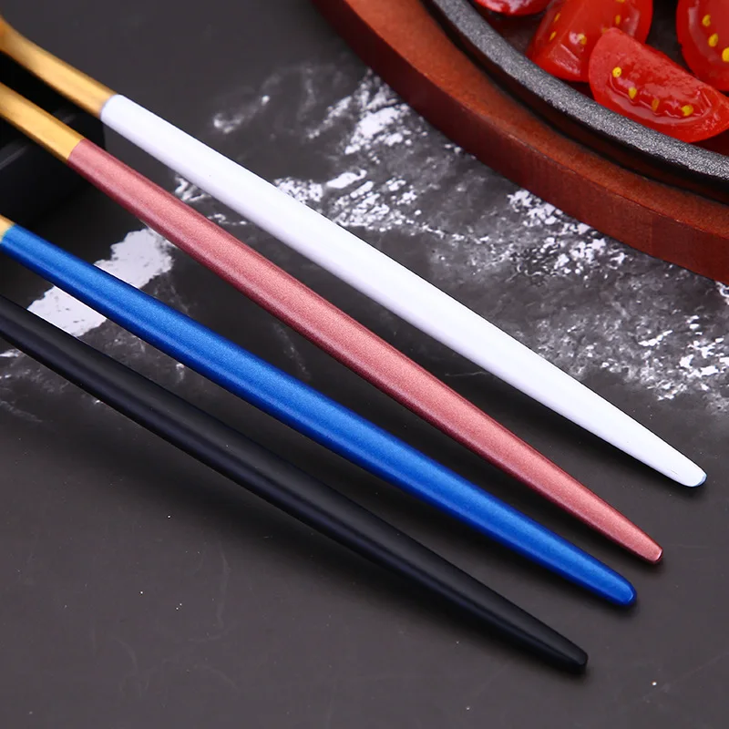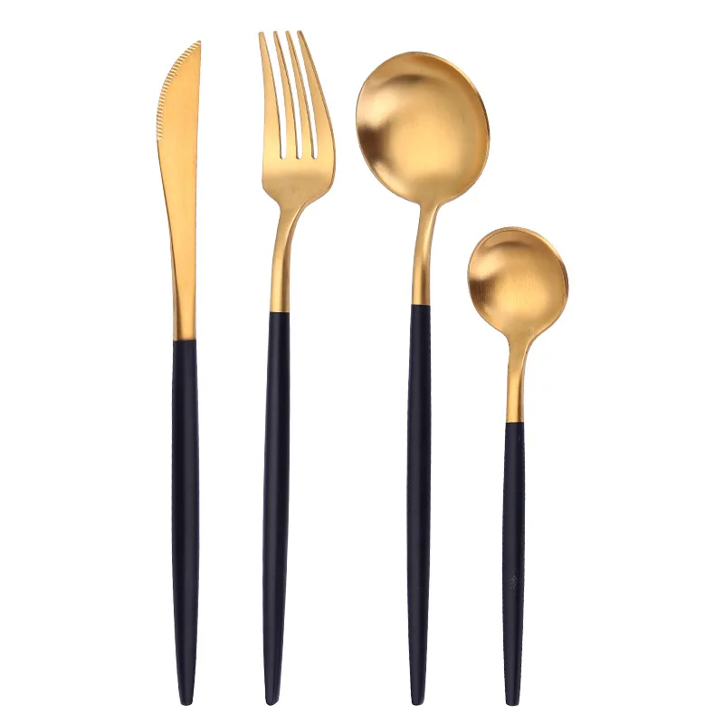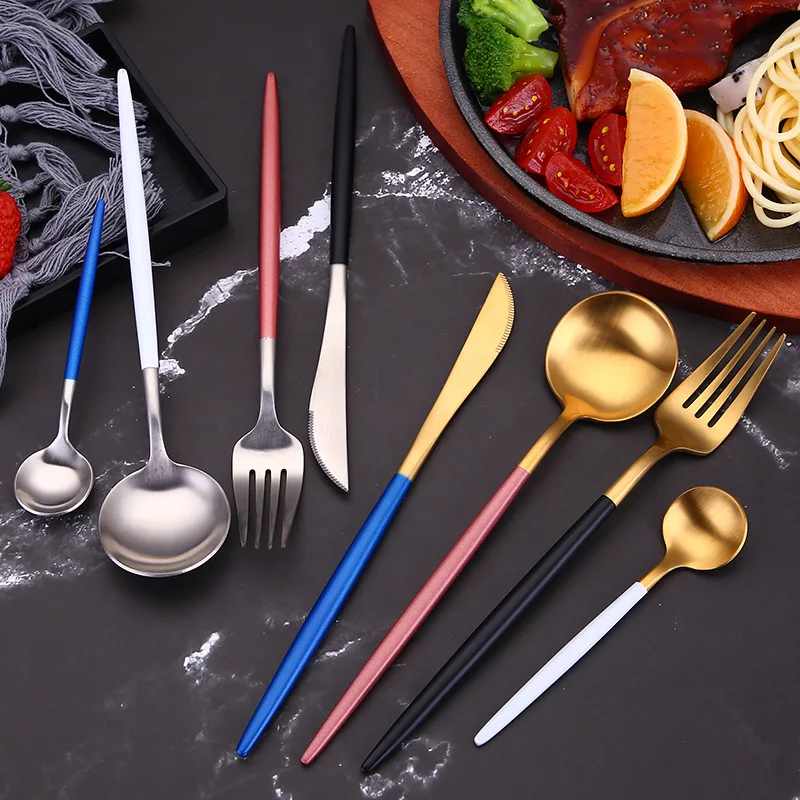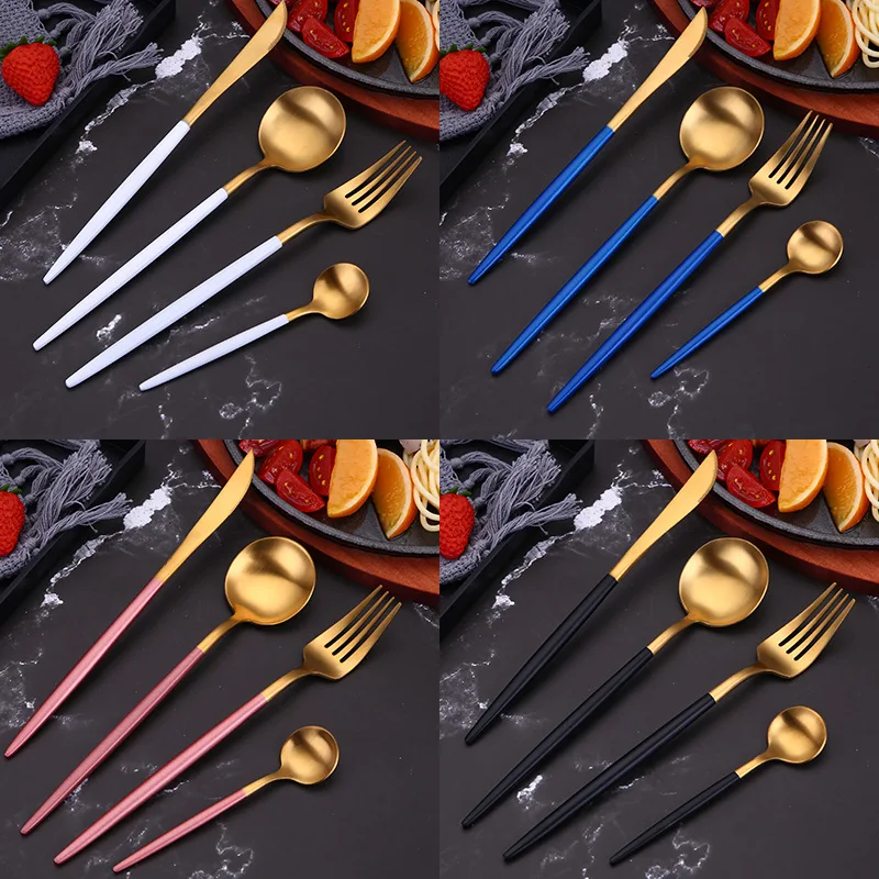 Gold Black Blue Silver Fork Spoon Knife Stainless Steel Cutlery Set Silverware Tableware Dinnerware Spoon Kitchen Flatware Set