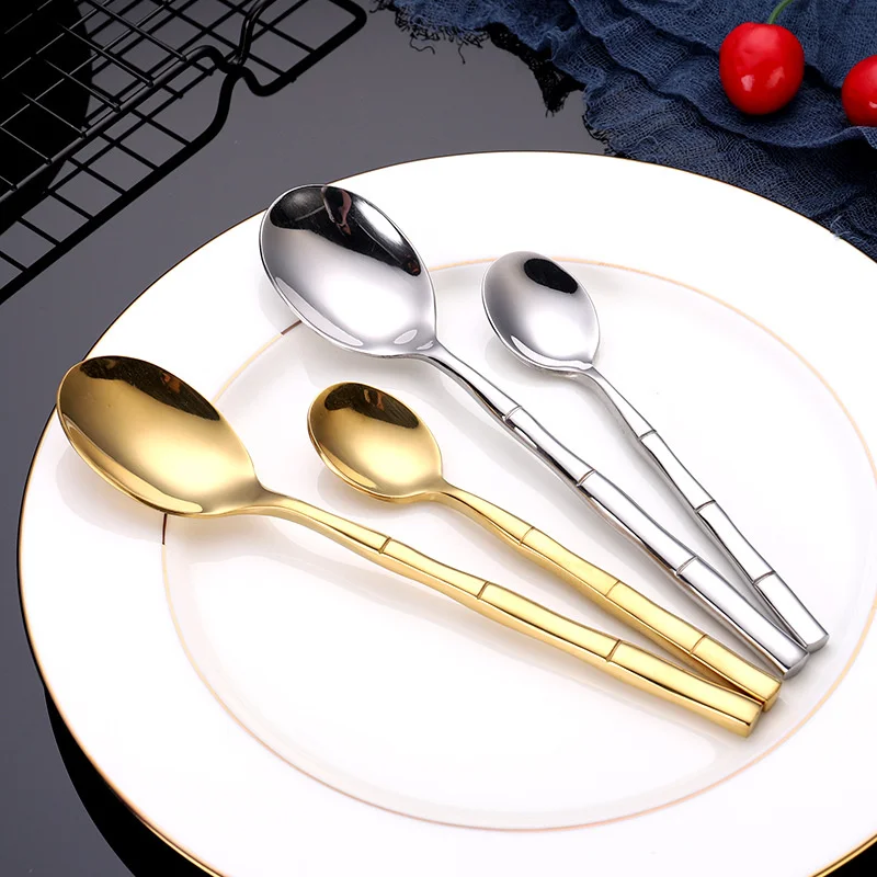 Gold Steak Cutlery Set Dining Set Stainless Steel Dinner Tableware Bamboo Gadget Sets Kitchen Spoon And Steak Fork Set