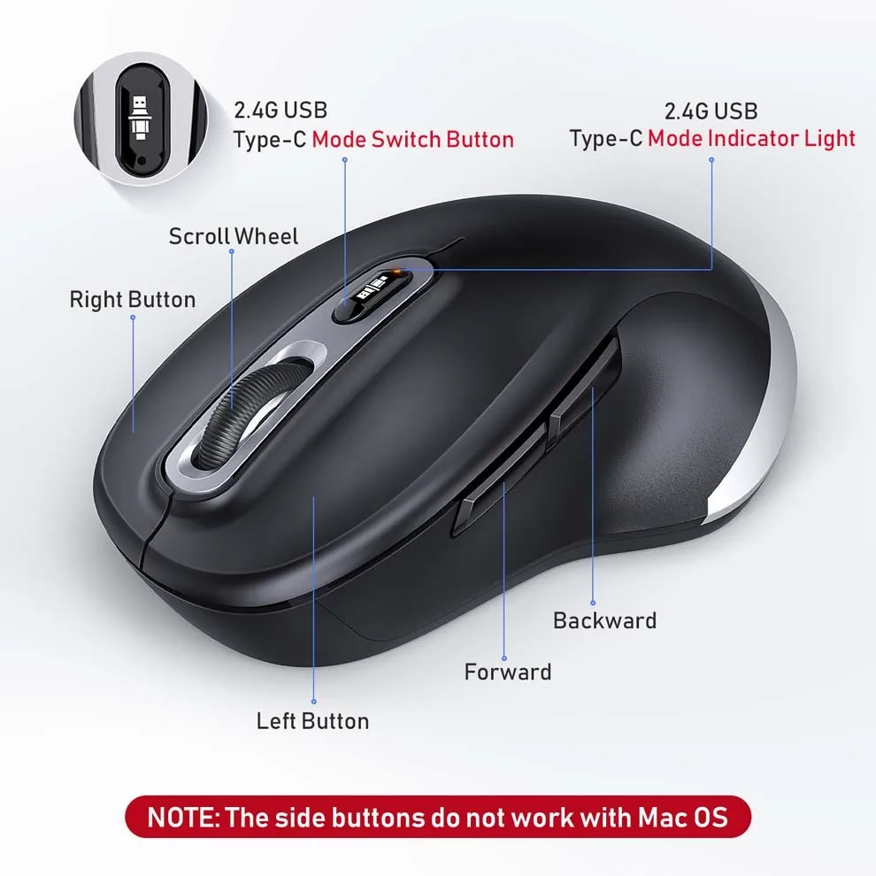 Jelly Comb Type C Wireless Mouse for MacBook Laptop Computer Mouse USB 2.4GHz Ergonomic Mice Adjustable 2400DPI Gaming Mouse