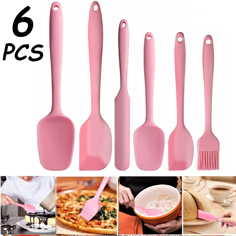 Non-Stick Silicone Cream Spatula Scraper Spoon Oil Brush Heat-Resistant Spatulas Flexible Kitchen Utensils for Baking Cooking