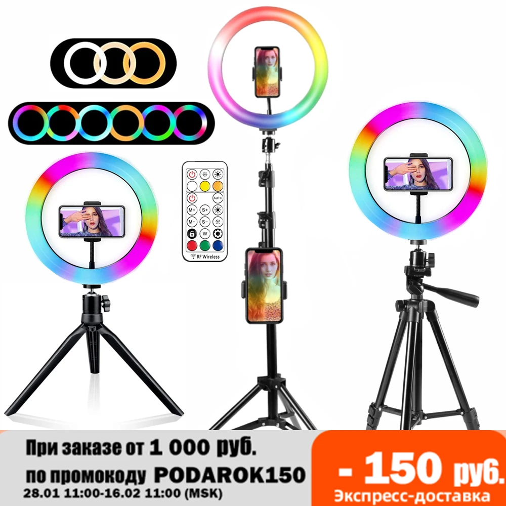 Ring Light Rgb Lamp Ring Round With Tripod For Smartphone Mobile Led Video Light Ring To Make Youtube Photographic Lighting