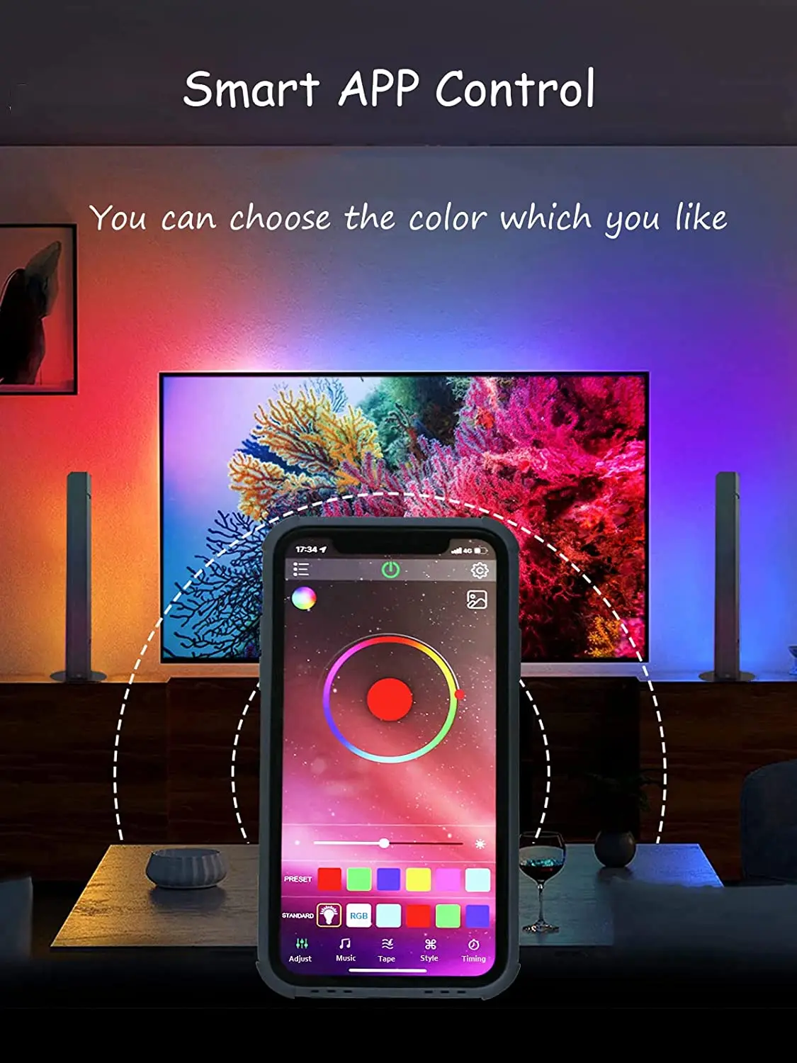 Smart Bluetooth RGB LED Light Bars Ambiance Backlight Bars with Multiple Scene & Music Modes for PC Gaming TV Decoration Lamp