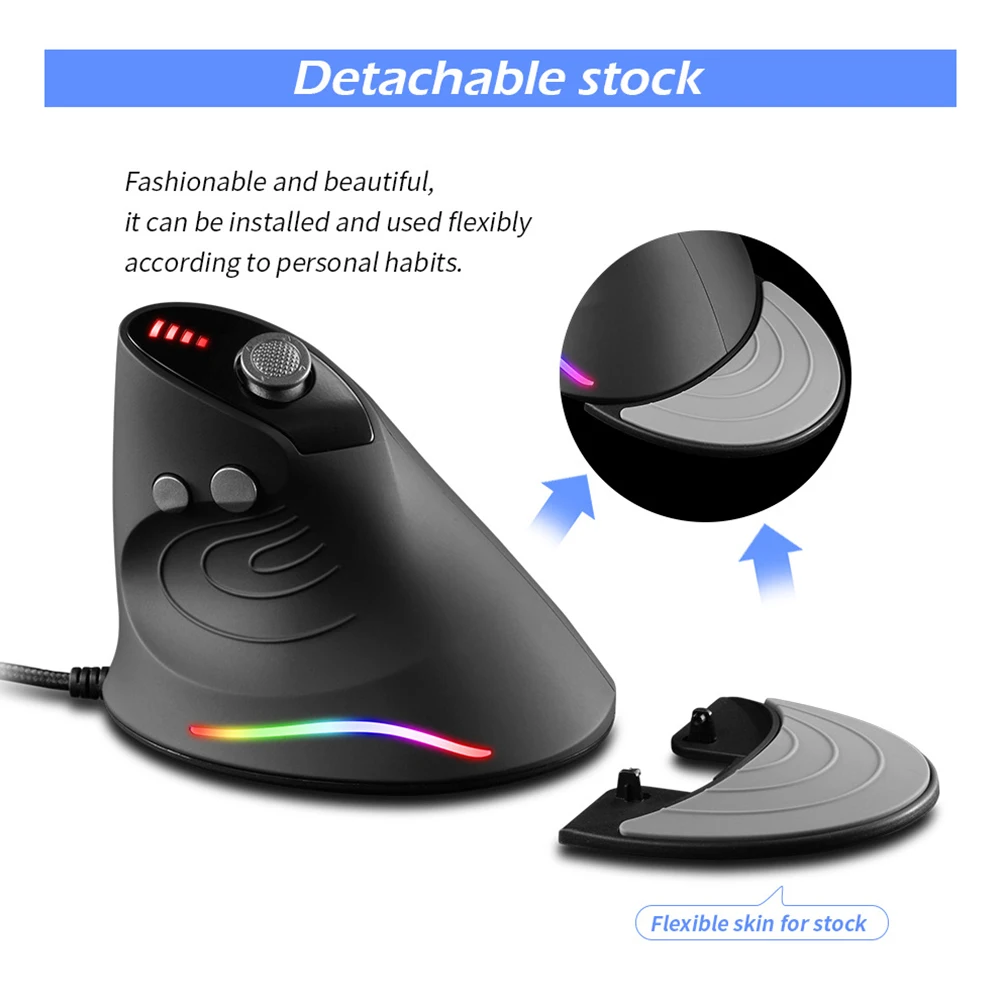 ZELOTES C-10 Ergonomics Vertical Gaming Mouse 5 Modes 10000DPI RGB Wired Right Hand Mice Gaming Mouse For PC Laptop Computer