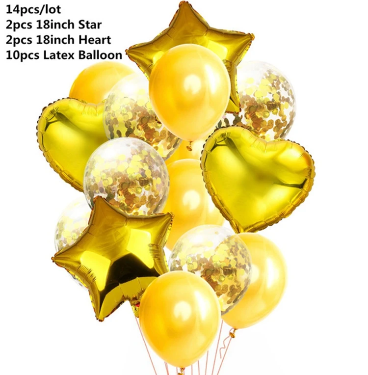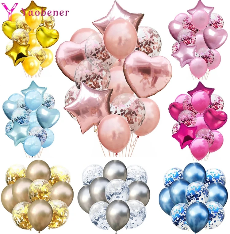 5pcs confetti balloon + 5pcs latex balloon + 2pcs foil star balloon + 2pcs heart balloon