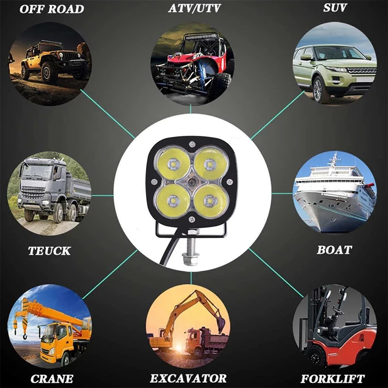 Except for off road vehicle lighting, it can also be applied to Material handling, Agricultural machinery lighting, Marine LED lighting and Emergency & rescue LED lights, such as: