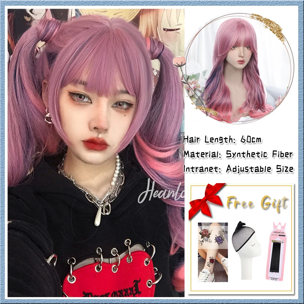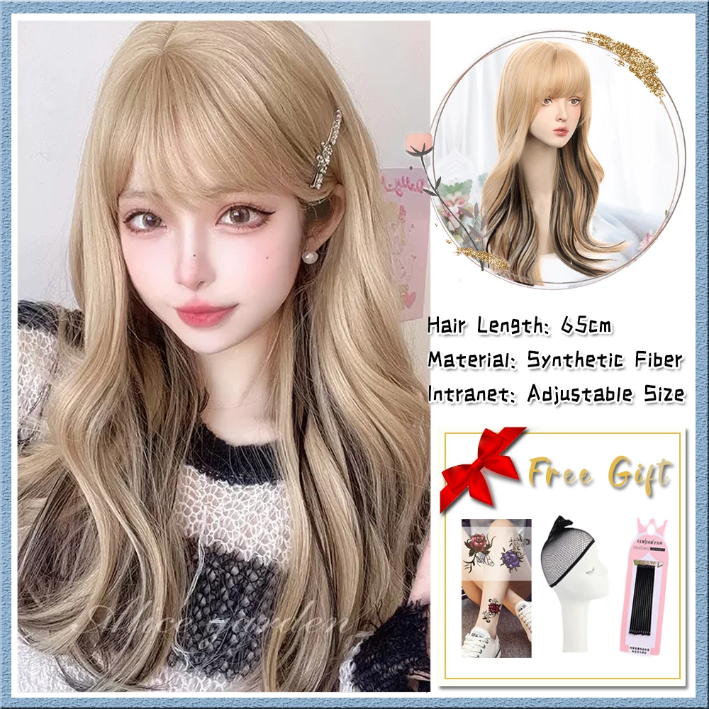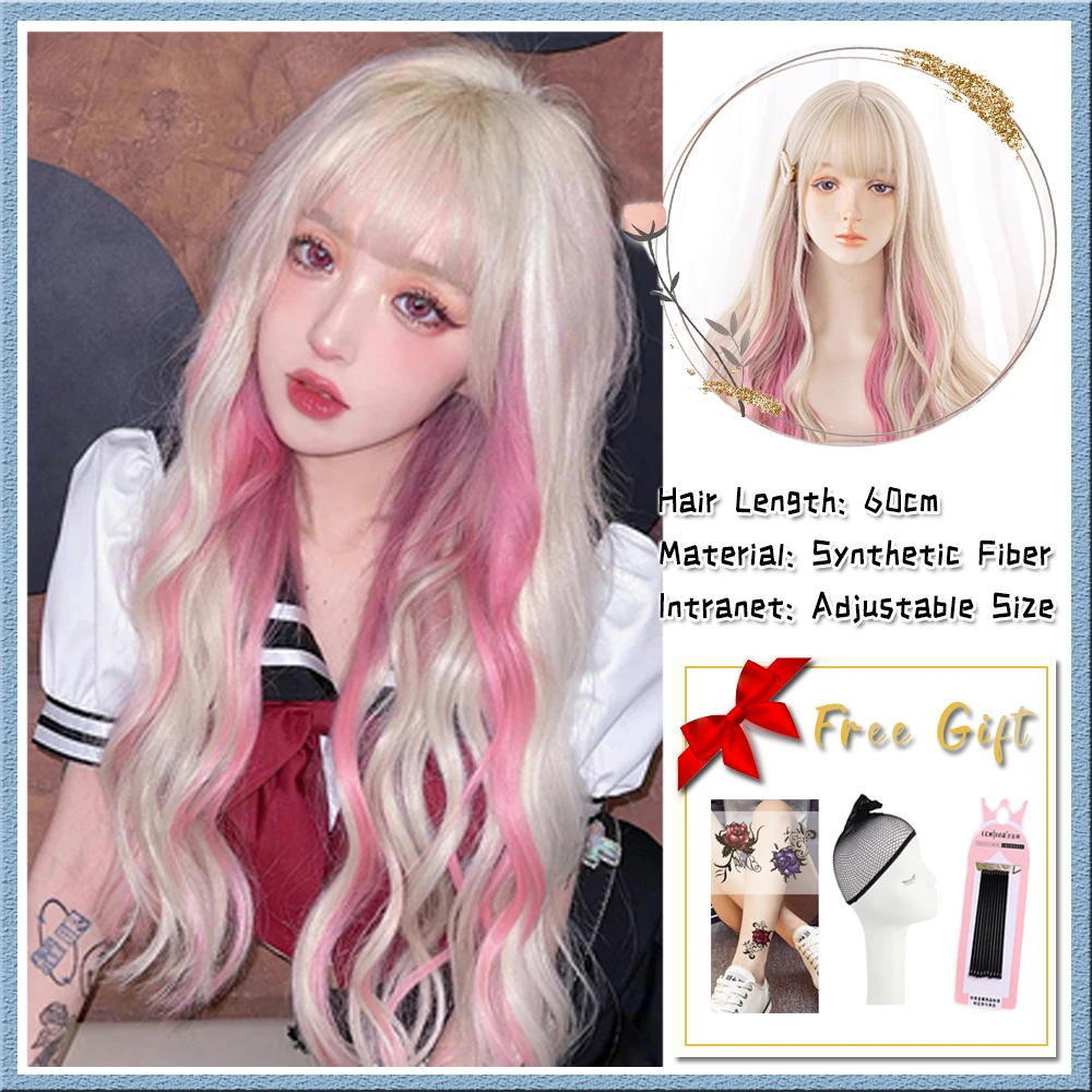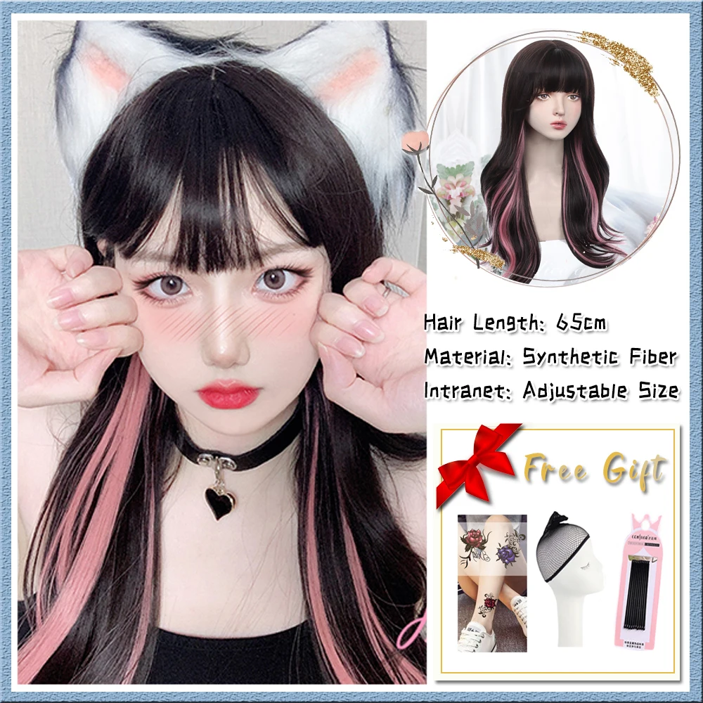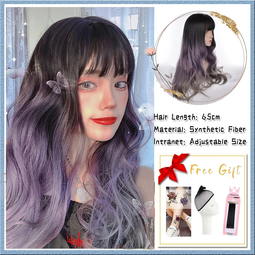 US $10.62 Blue And White Gradient Lolita Long Straight Hair With Bangs Synthetic Wig Women's JK Natural Heat-Resistant Wig
