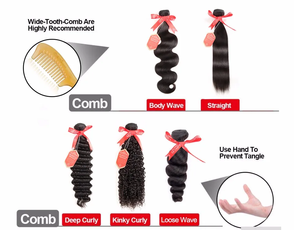 1. Do not use comb to brush the curly hair, just running with your fingers gently; use wide-tooth for straight or body wave style.