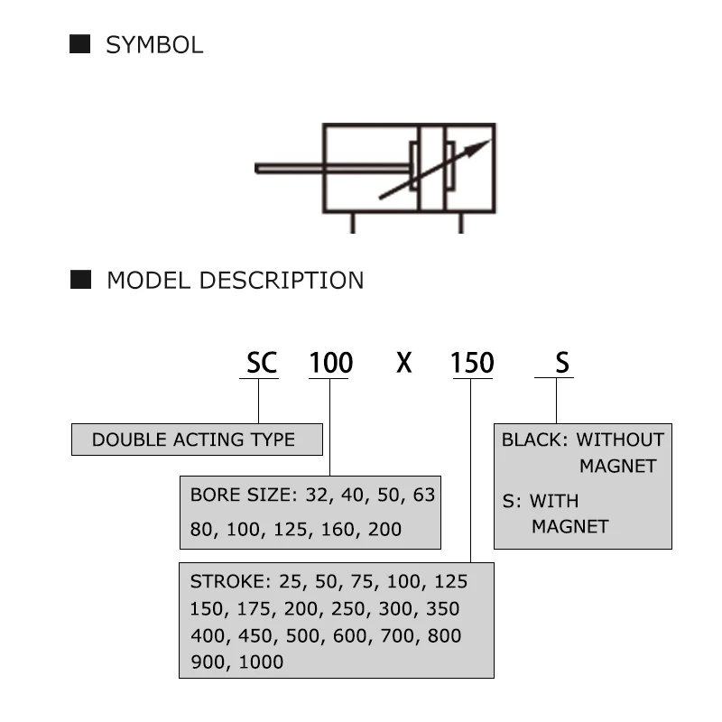 US $13.99 SC 32 40 50 63 Bore Pneumatic Air Cylinder Piston 50 75 100 150 200 300 400 500 600 800 1000mm Stroke Double Acting Cylinders