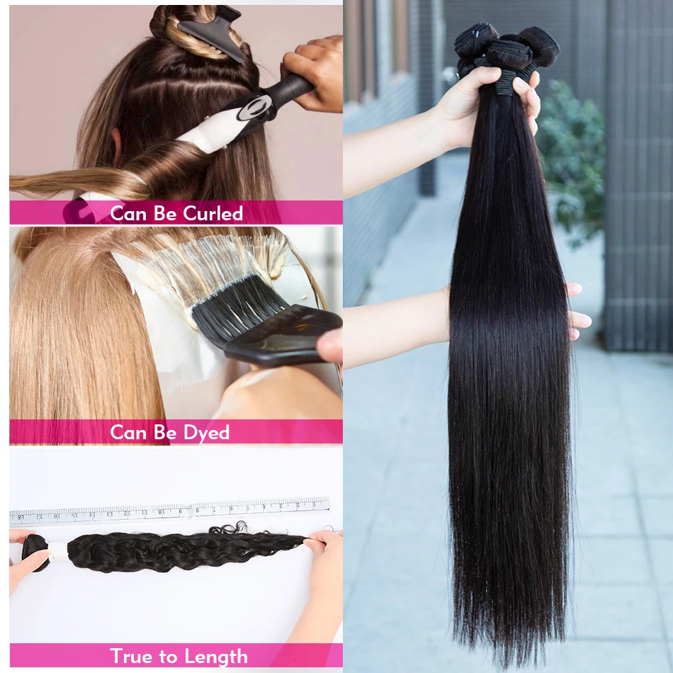 US $16.19 Luvin 30 40 Inch Bone Straight Human Hair Bundles Brazilian Remy Weave Straight Natural Bundles Hair Extensions tissage
