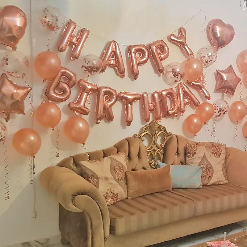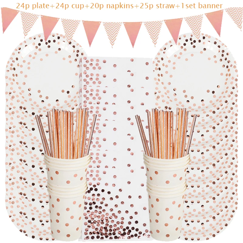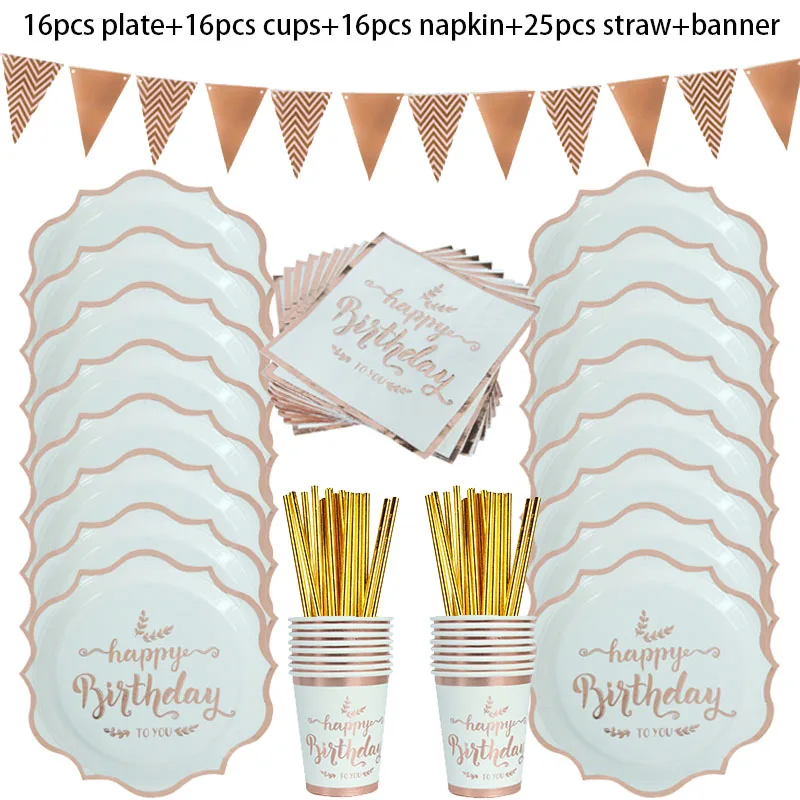 Name: Rose gold disposable tableware and birthday party balloon decoration
