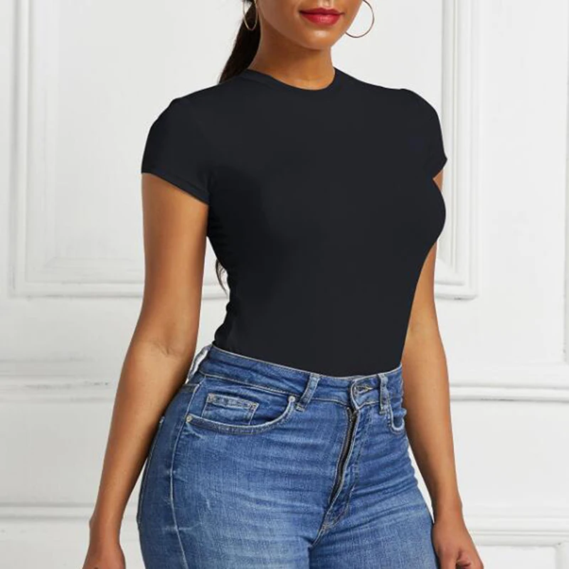 Sexy One Piece Bodycon Bodysuit Short Sleeve O Neck Open Basic White Black Red Overalls Women Body Top Skinny Rompers Female
