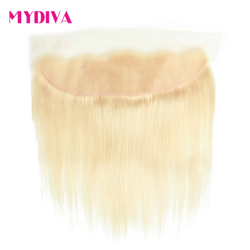 613 Bundles With Frontal Brazilian Straight Hair 3 Bundles With Closure Remy Blonde Human Hair Bundles With Frontal 13*4 Mydiva