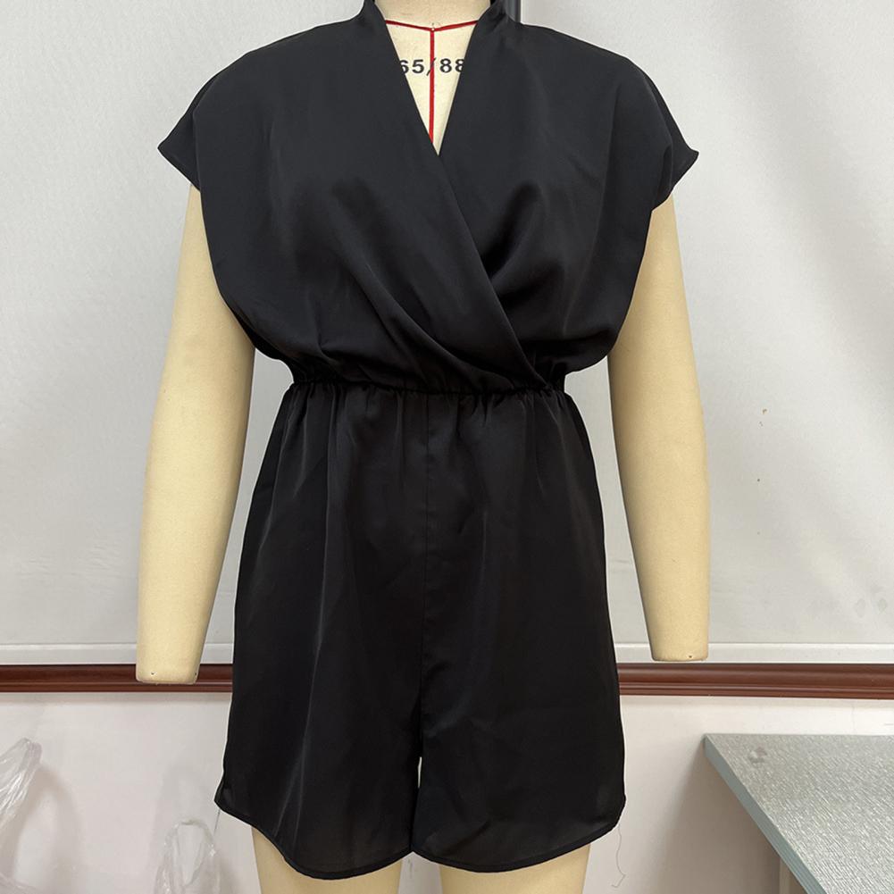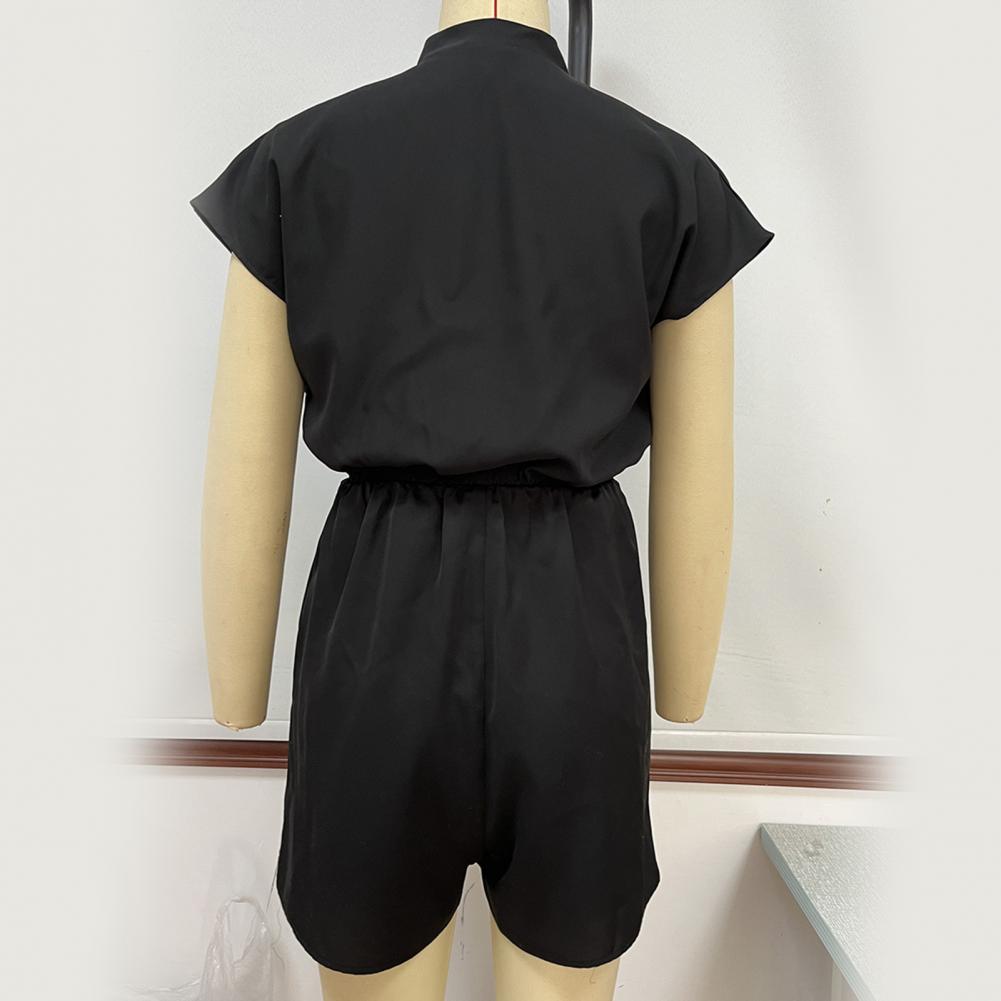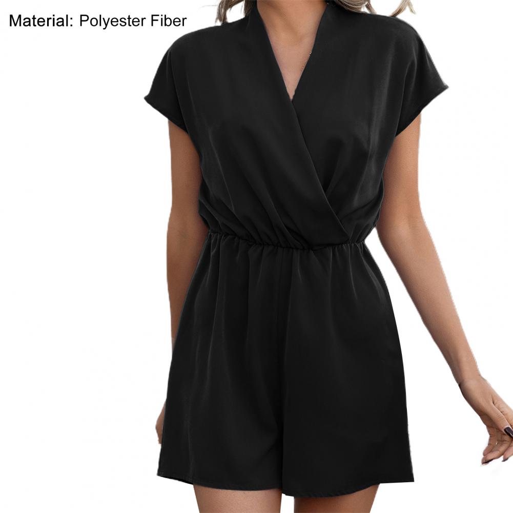 Women Summer Jumpsuits Fashion Solid Pockets Jumpsuit V-Neck Short Sleeve Female High Waist Rompers Playsuit combinaison femme